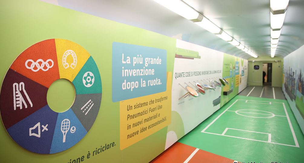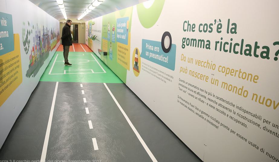 La terza carrozza “Il cerchio perfetto del riciclo” sarà dedicata interamente a Ecopneus, in prima linea nel recupero e riciclo dei pneumatici fuori uso. Si tratta di una delle buone pratiche a livello nazionale ed europeo e sarà raccontata attraverso installazioni, monitor e percorso mostra interattivo.