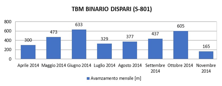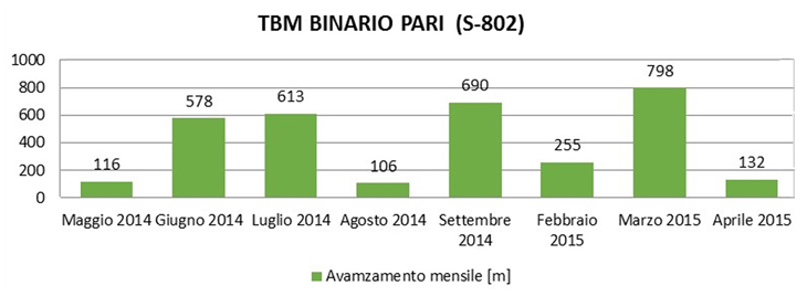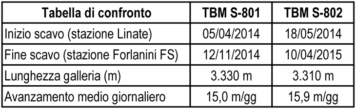 La tratta è stata eseguita in meno di otto mesi, con uno sfalsamento temporale di partenze fra le due TBM di circa un mese e mezzo, escludendo il fermo della TBM pari (circa quattro mesi) connesso a problematiche non inerenti lo scavo meccanizzato. I cedimenti superficiali indotti dalla realizzazione della galleria sono stati approfonditamente analizzati durante la fase progettuale, allo scopo di formulare prescrizioni atte a minimizzare le interferenze con gli edifici presenti in superficie. Durante la fase di scavo, si è inoltre svolto un monitoraggio continuo degli abbassamenti del piano campagna, volto a verificarne la corrispondenza con i valori previsti in sede di progetto.