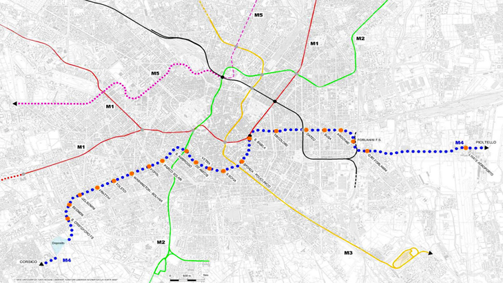 - due TBM di diametro pari a 6,36 m: tratta stazione Linate Aeroporto-stazione Tricolore (Expo+Est);