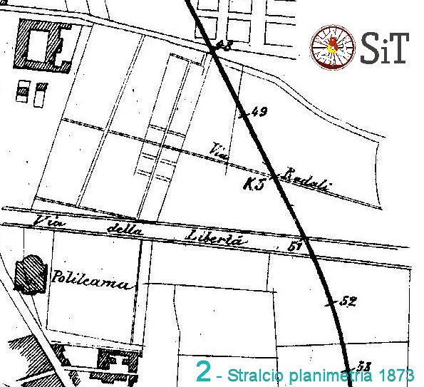 In figura 10(2) si vede la situazione schematica dell’edificato precedente alla chiusura del vecchio raccordo, limitata ai fabbricati più prossimi al tracciato ferroviario. Si ricavano le seguenti informazioni:
