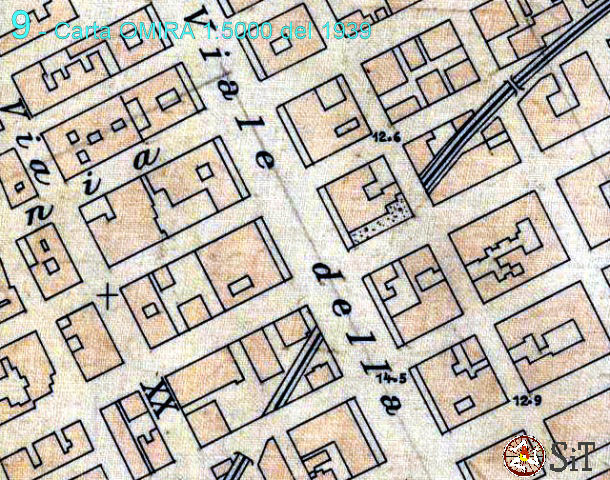 In effetti, per comprendere l’effettiva relazione tra linea ferroviaria ed edifici circostanti, con la distinzione tra trincea a cielo aperto e galleria artificiale (realizzata coprendo tratti originariamente in trincea) è opportuno consultare la carta del Comune di Palermo edita da OMIRA – Roma nel 1939. Lo stralcio in figura 9 mostra quanto prima descritto circa lo sviluppo della galleria artificiale sotto via Libertà. Si nota che verso il Porto il tratto a valle della via Libertà fu coperto sino oltre la prima parallela, la via Simone Corleo.