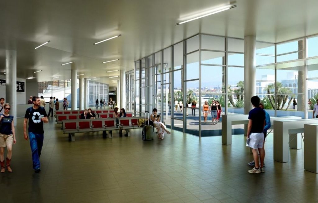 - la realizzazione di una nuova struttura di circa 2.400 mq di basso impatto visivo ma di elevata qualità architettonica, nella quale riorganizzare le attività del terminal passeggeri (accoglienza imbarco-sbarco, biglietterie, sosta, ristoro, informazione ecc.);