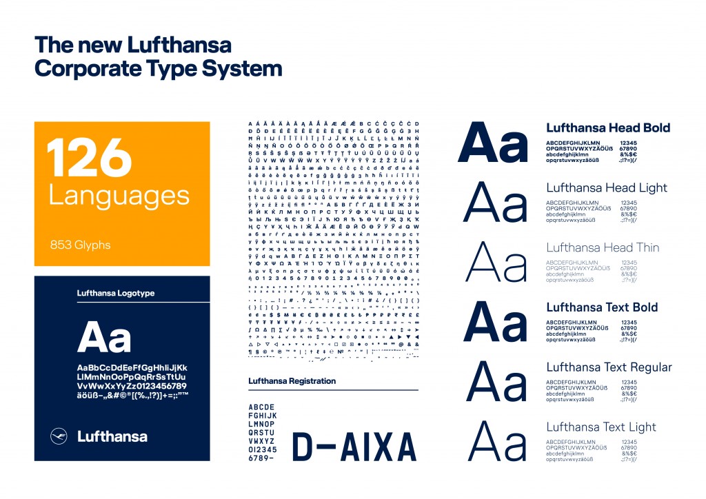 Una sfida importante nella revisione del design è stata quella di soddisfare i requisiti del mondo digitale di oggi e di domani. Oltre ad ottimizzare la gru per i nuovi requisiti tecnici, Lufthansa ha sviluppato un proprio carattere tipografico, particolarmente facile da leggere su dispositivi mobili o Smartwatch.