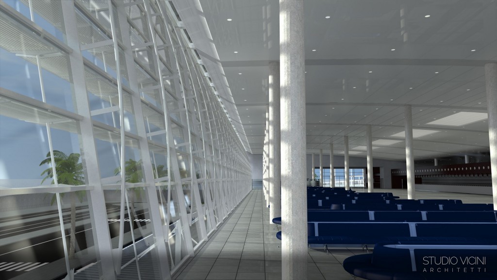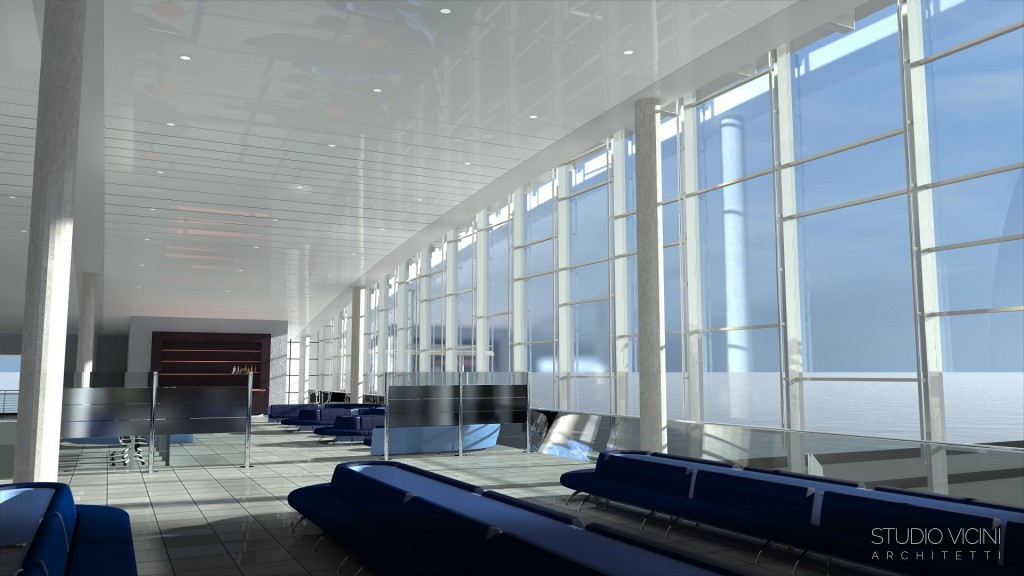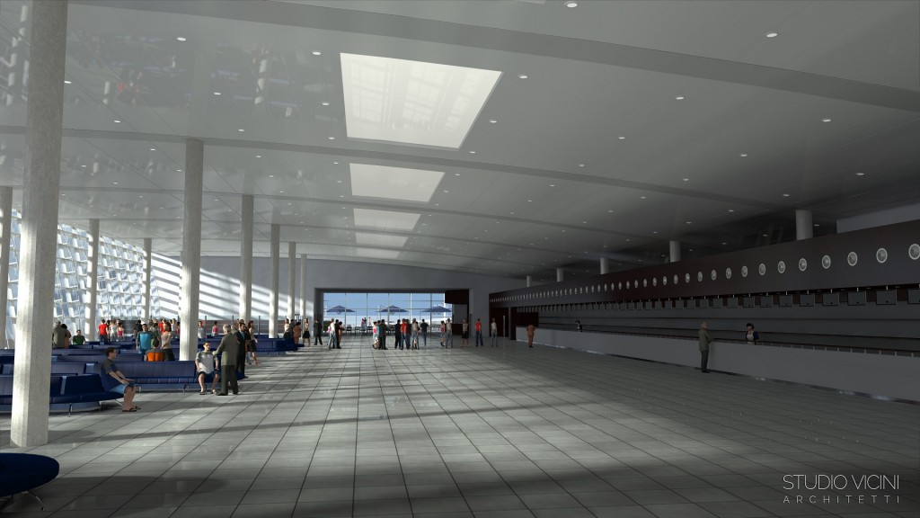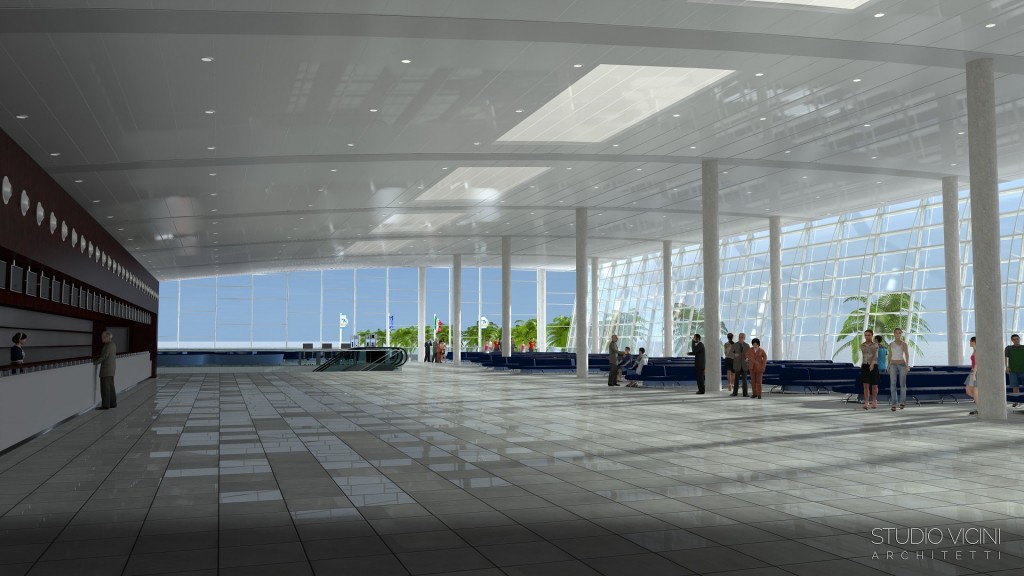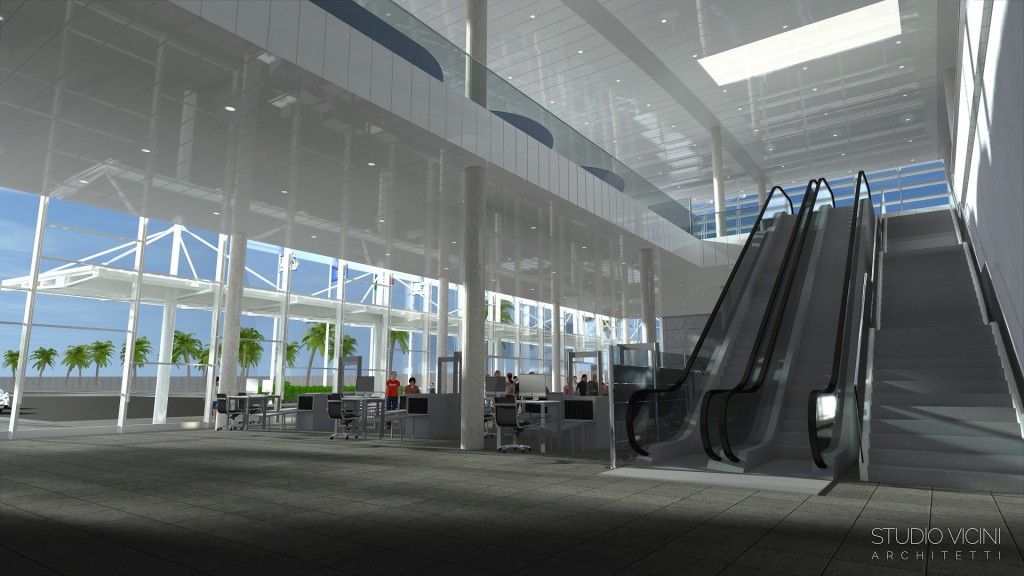 - Al primo piano, invece, saranno posizionate 60 postazioni per il check-in, una Sala Vip con postazioni check-in dedicate, un bar, un ristorante ed una sala d’attesa con numerosi posti a sedere.