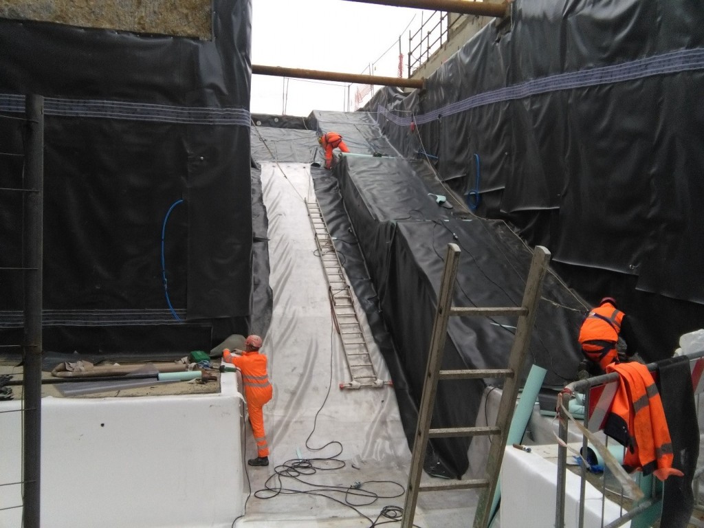 Completata la realizzazione delle gallerie e posati i binari, i lavori si sono concentrati sui locali della stazione. Conclusi murature e pavimenti dei locali tecnici, così come le strutture e le necessarie impermeabilizzazioni interne, sono stati installati i sistemi antincendio. Allo stesso tempo è stato completato il secondo tratto del corridoio di interscambio con l’aeroporto, e sono stati avviati i lavori propedeutici alla realizzazione del terzo tratto dello stesso corridoio.