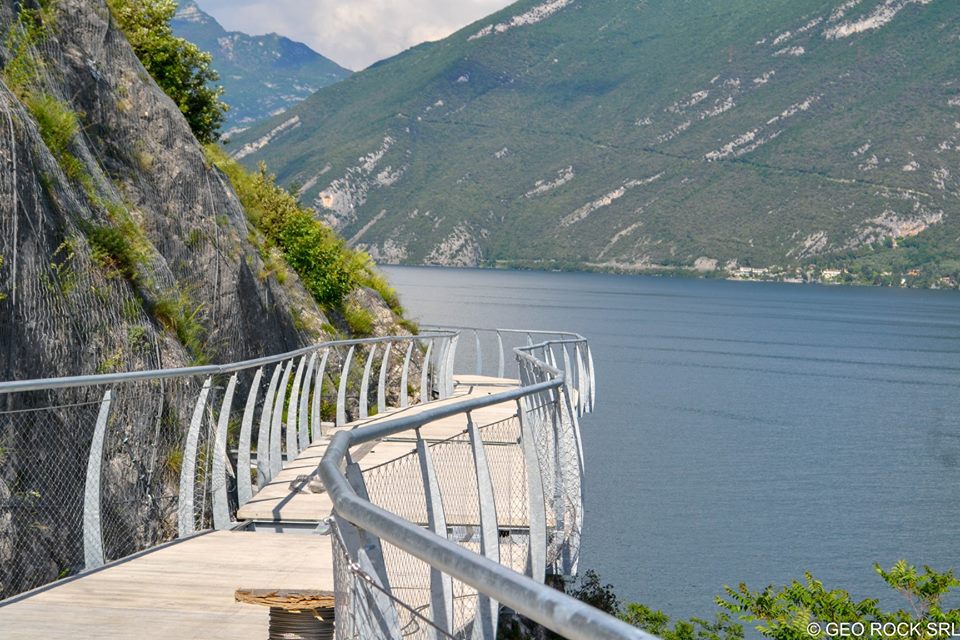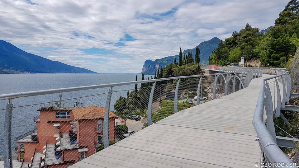 Domani 14 luglio verranno inaugurati i primi due chilometri della pista ciclabile sospesa sul lago di Garda, da Limone sul Garda a Riva del Garda.