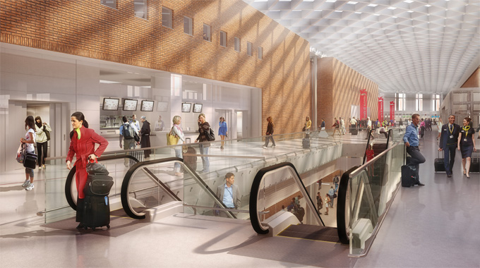 L’ampliamento a nord sarà destinato alla nuova area per i varchi di sicurezza e ai passeggeri, mentre le aree a sud saranno principalmente destinate ai passeggeri extra-Schengen.