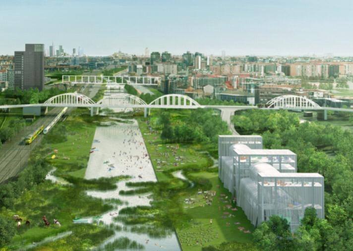 Il progetto di OMA e Laboratorio Permanente propone due nuovi dispositivi ambientali: l’uno verde (un grande bosco lineare nello scalo Farini in grado di raffreddare i venti caldi provenienti da sud-ovest e di depurare l’aria dalle particelle più tossiche); l’altro blu (un lungo sistema lineare a San Cristoforo per la depurazione delle acque, che definisce un paesaggio per realtà umane e non-umane).