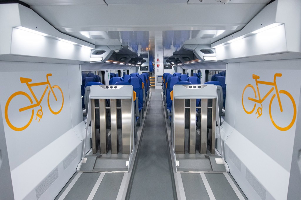 - riduzione del 30% dei consumi di energia elettrica (a passeggero*km rispetto alla generazione precedente dei treni a due piani, modello TSR);