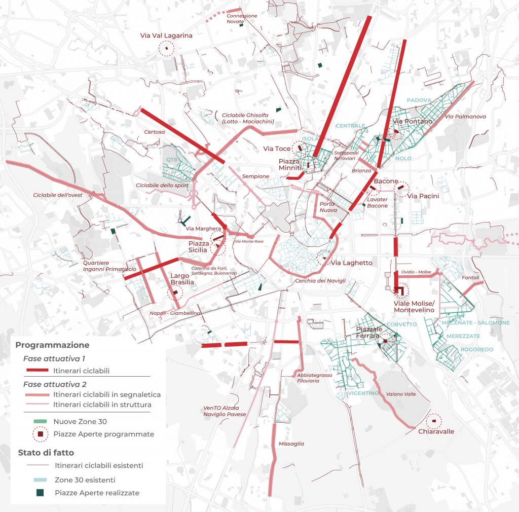 “Stiamo lavorando per mettere in sicurezza il trasporto pubblico – dichiara Marco Granelli assessore alla Mobilità – ma è importante anche riuscire a contenere il numero di auto in circolazione e la congestione e limitare il più possibile l’aumento dell’inquinamento atmosferico cittadino. In questi giorni abbiamo provato a pensare alla nostra città dopo le fasi più dure di questa emergenza, facendo tesoro di quanto imparato e con uno sguardo di lungo respiro che però parte dalle urgenti risposte ai problemi di oggi. I nuovi tempi e spazi della città, un modo nuovo di muoversi, la necessità di riprendere subito il lavoro e l’impegno a non lasciare indietro nessuno: ne è nato un piano straordinario di nuovi percorsi ciclabili e zone 30″.