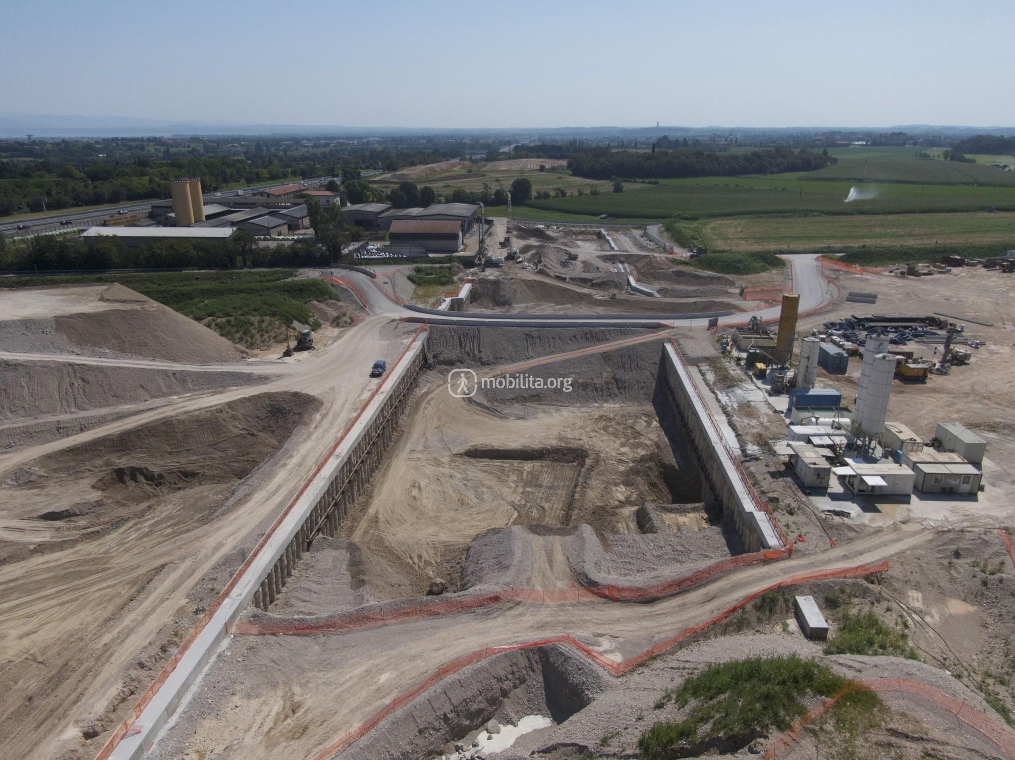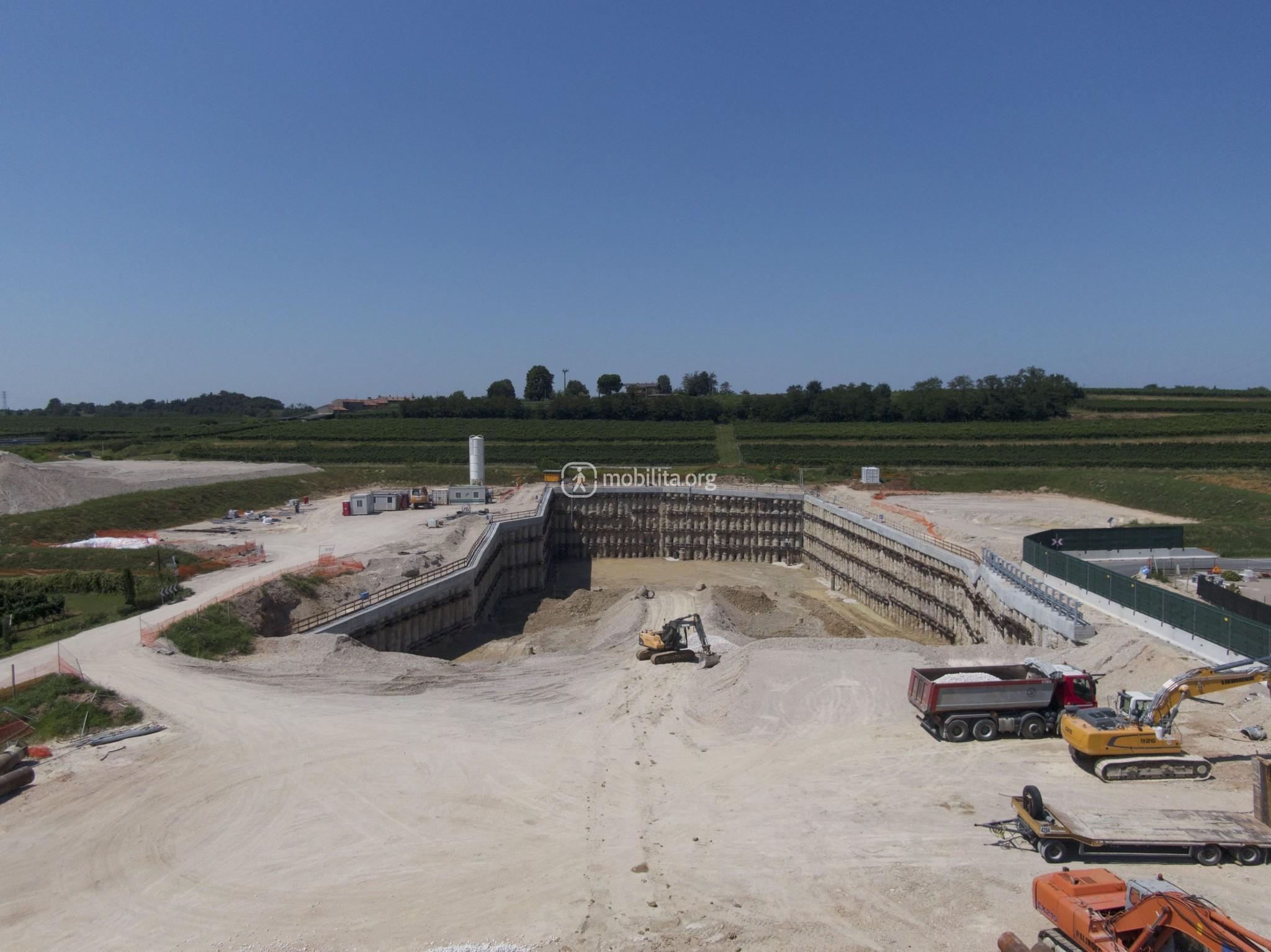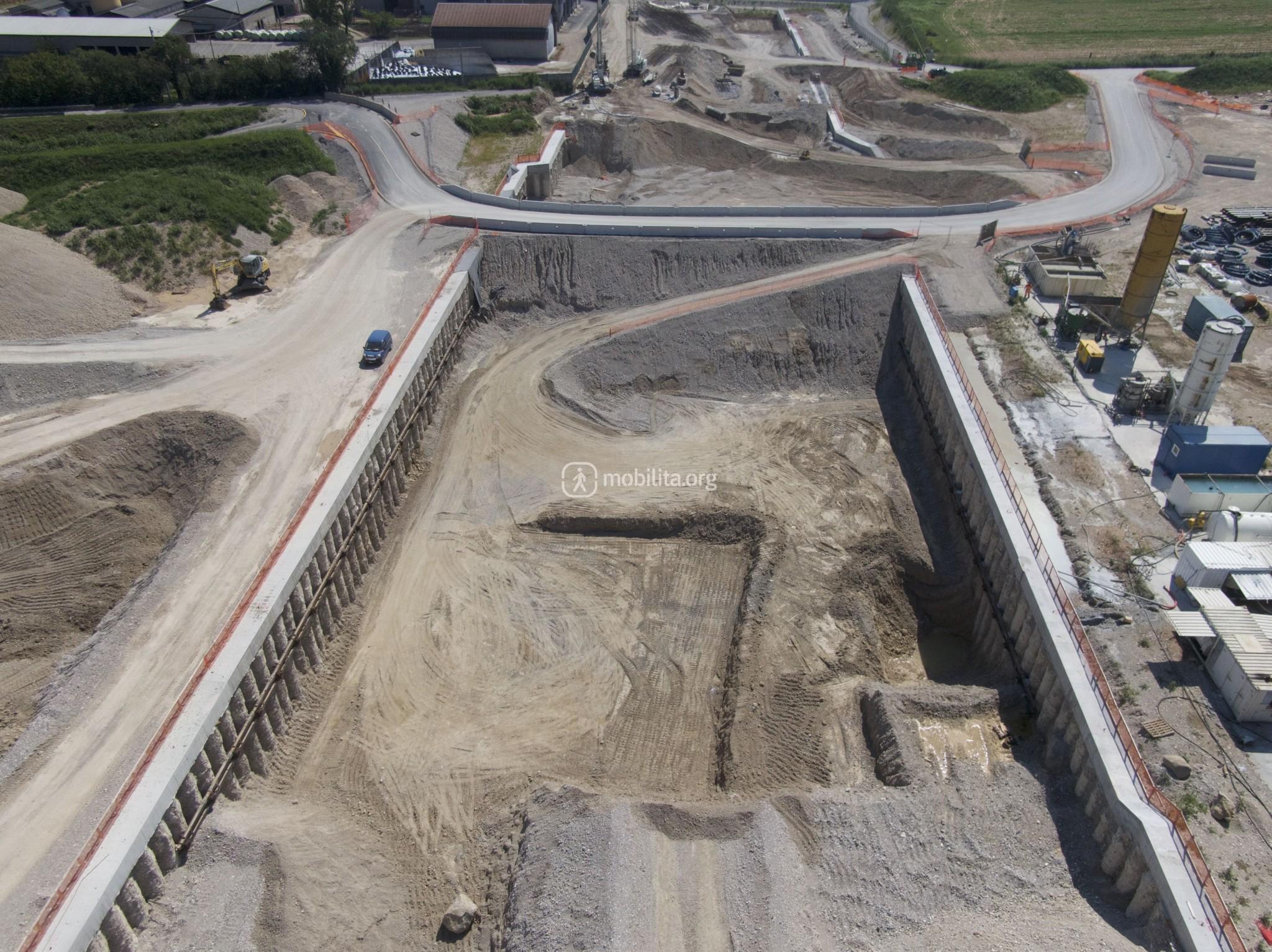 Ci spostiamo nel cantiere di Lonato Est dove terminerà la galleria scavata con la TBM e dove sono in corso le attività di realizzazione della fossa di uscita.
