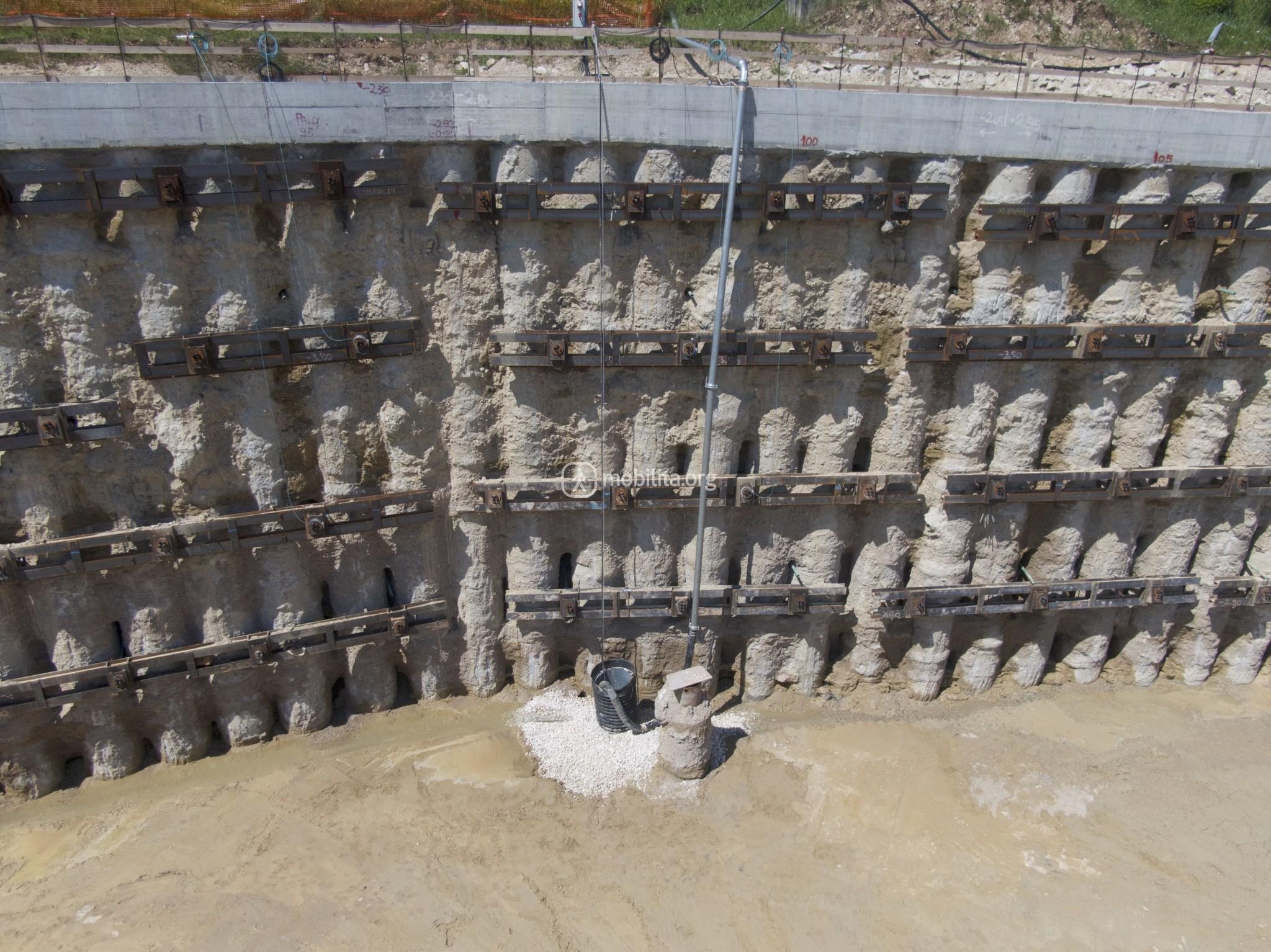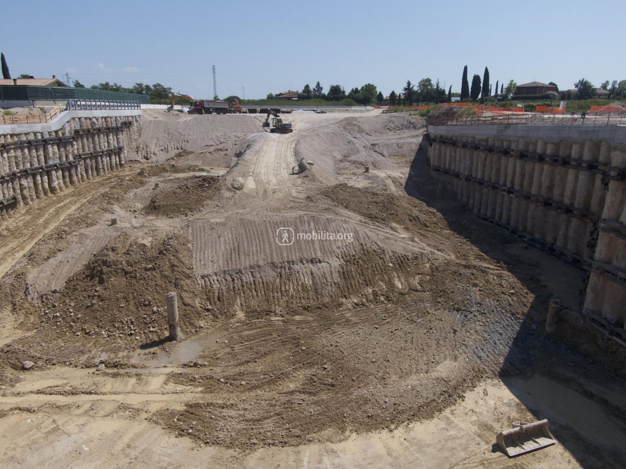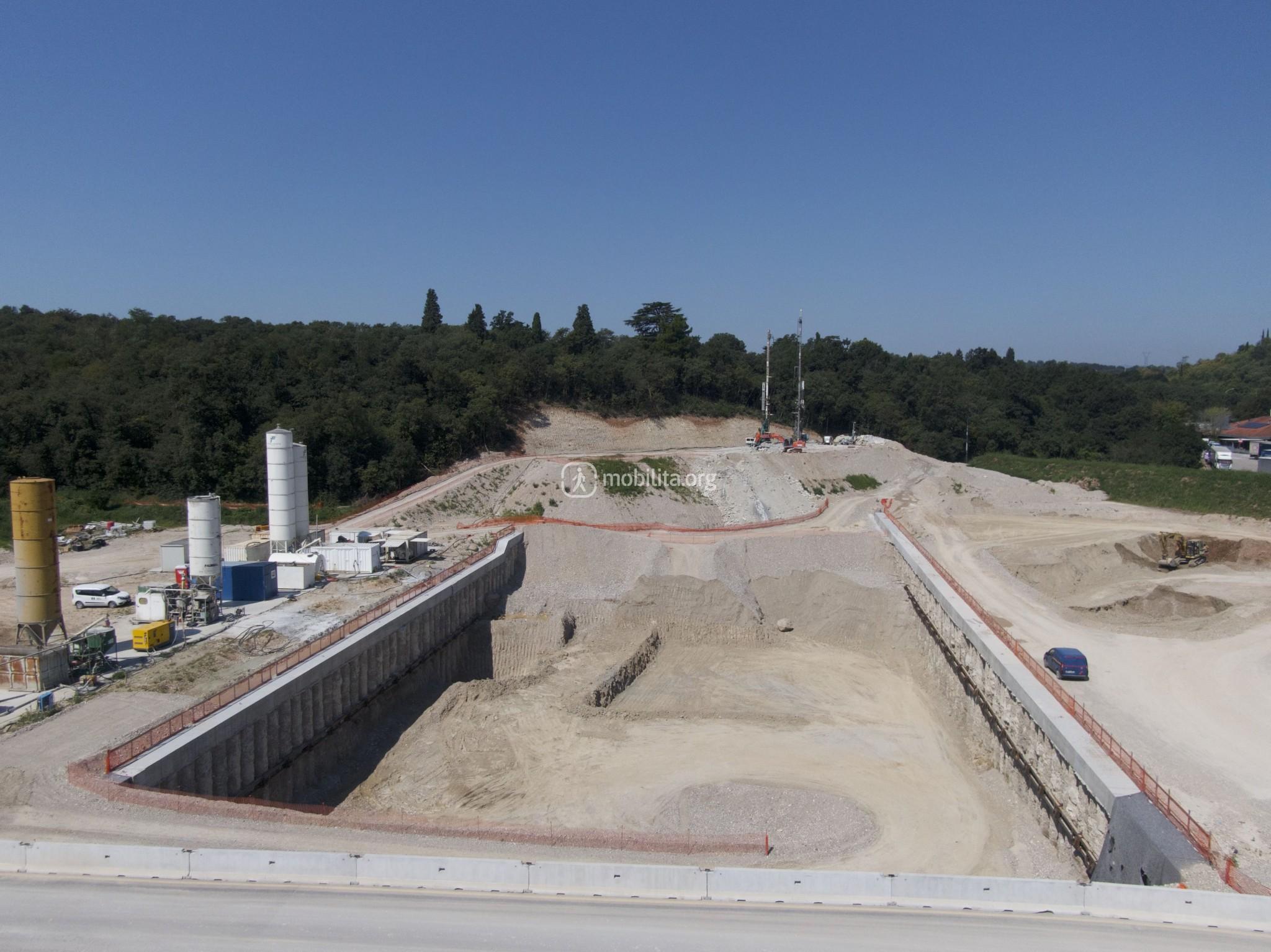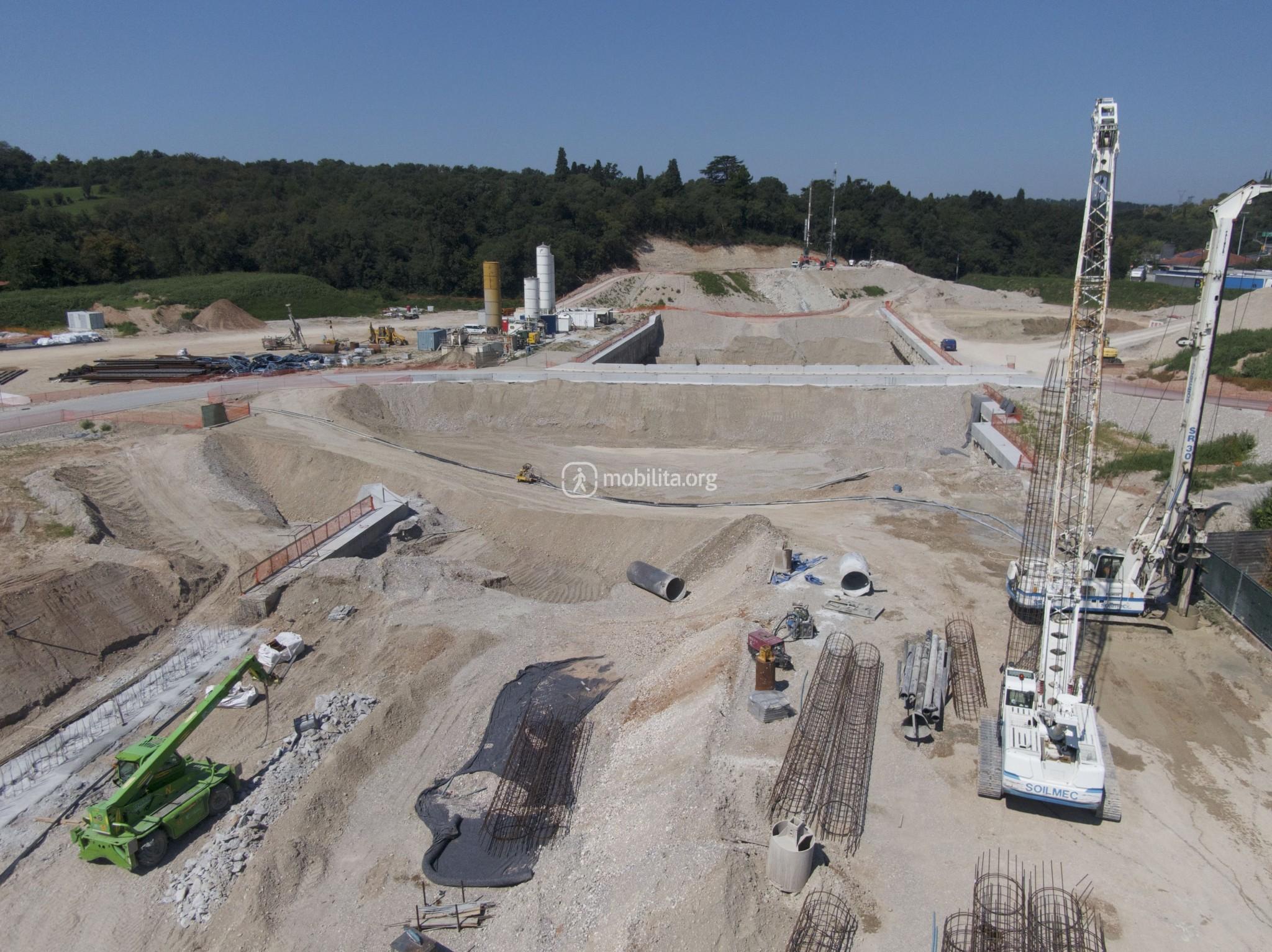 La nuova viabilità ha sbloccato i lavori lato Verona dove si stanno realizzando i nuovi pali di fondazione che costituiranno parte della fossa di uscita della TBM.