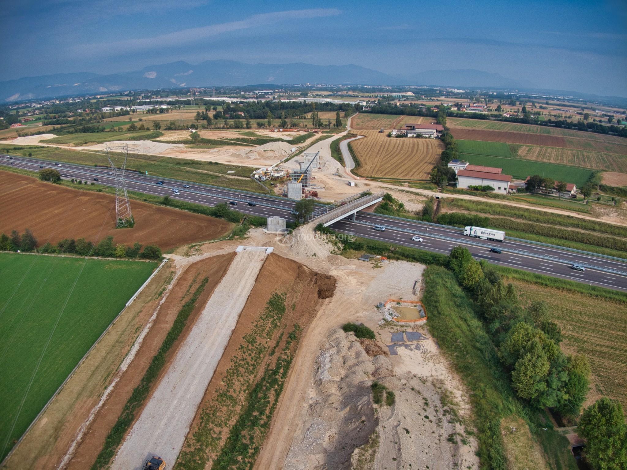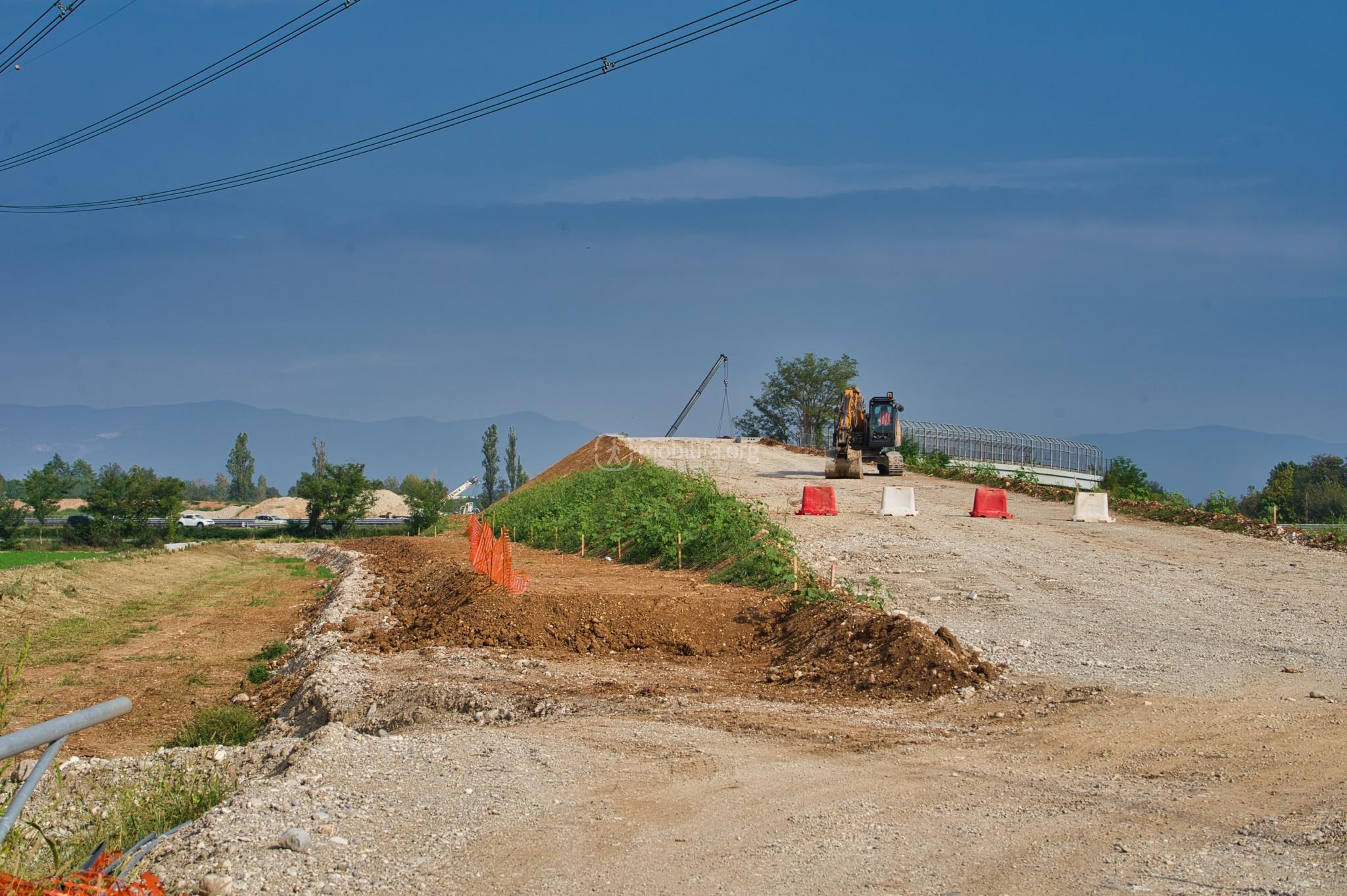 Poco distante dal cantiere di Lonato, vi è il cantiere di Calcinato dove è in via di realizzazione uno dei nuovi cavalcavia. L’unica differenza rispetto al precedente aggiornamento é la realizzazione della rampa di accesso lato mare al nuovo impalcato.
