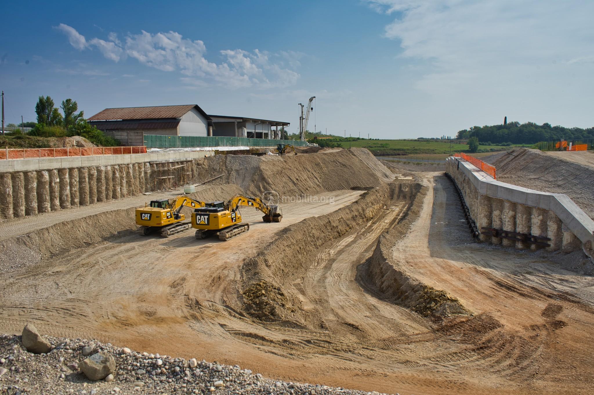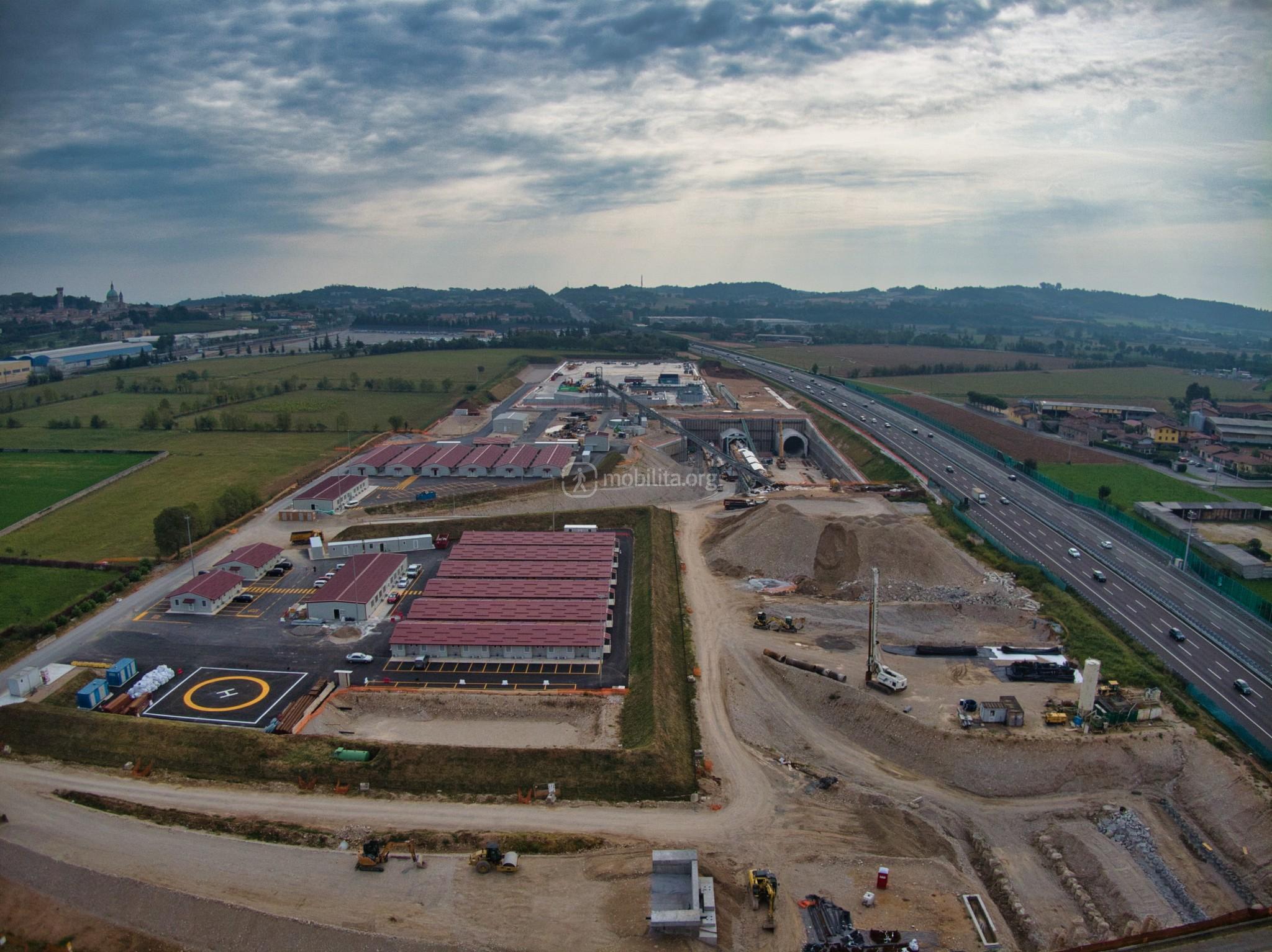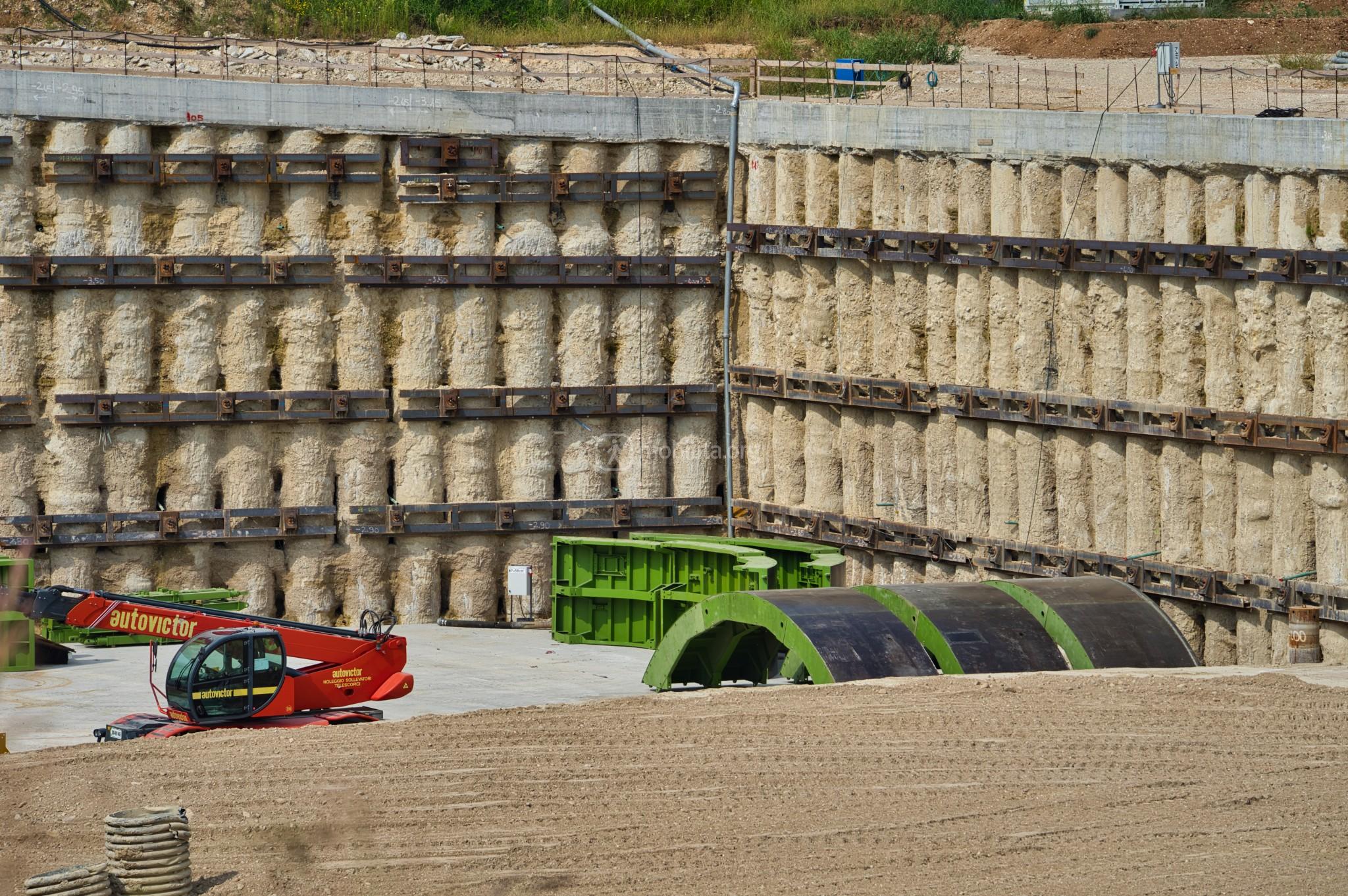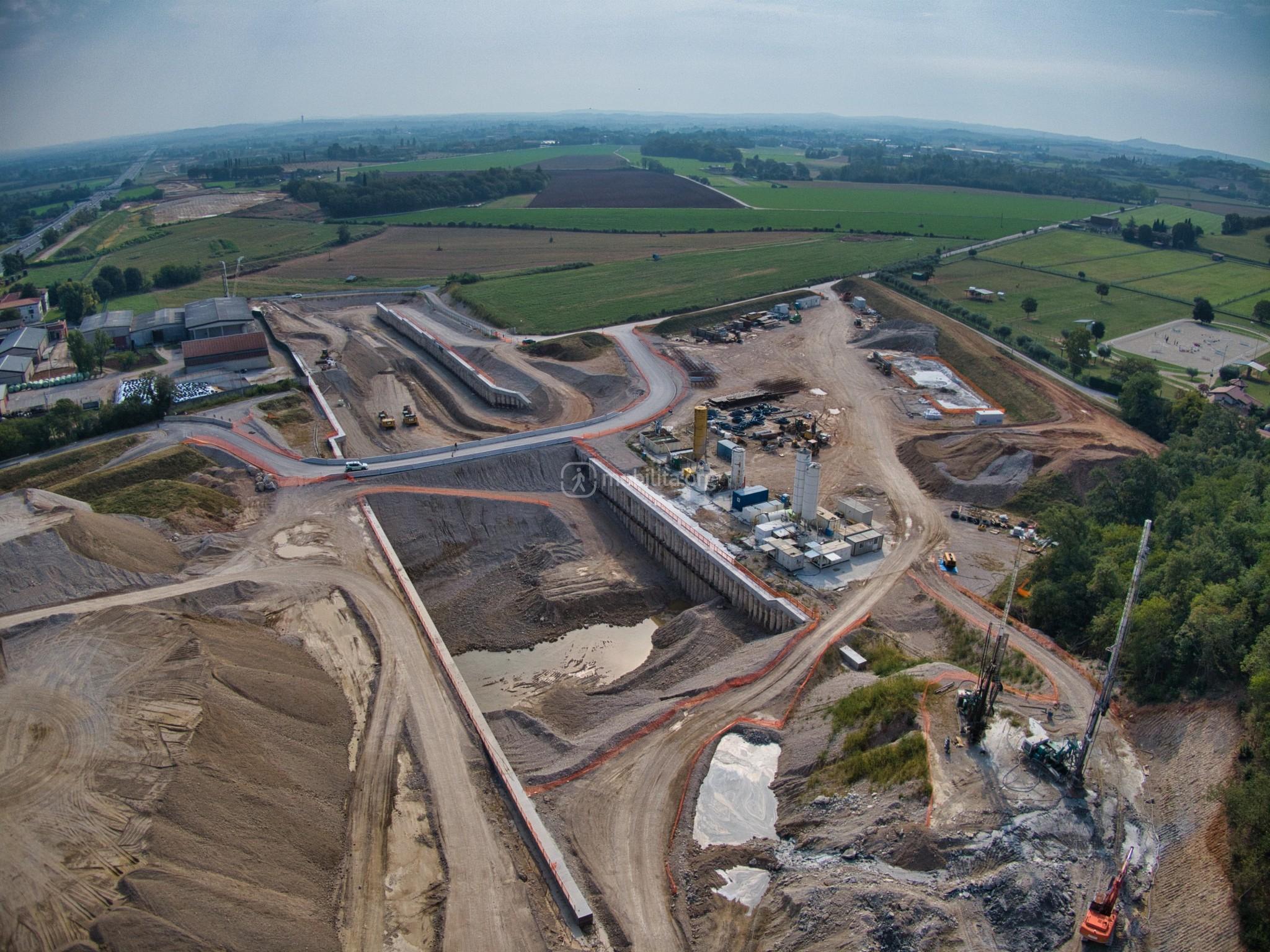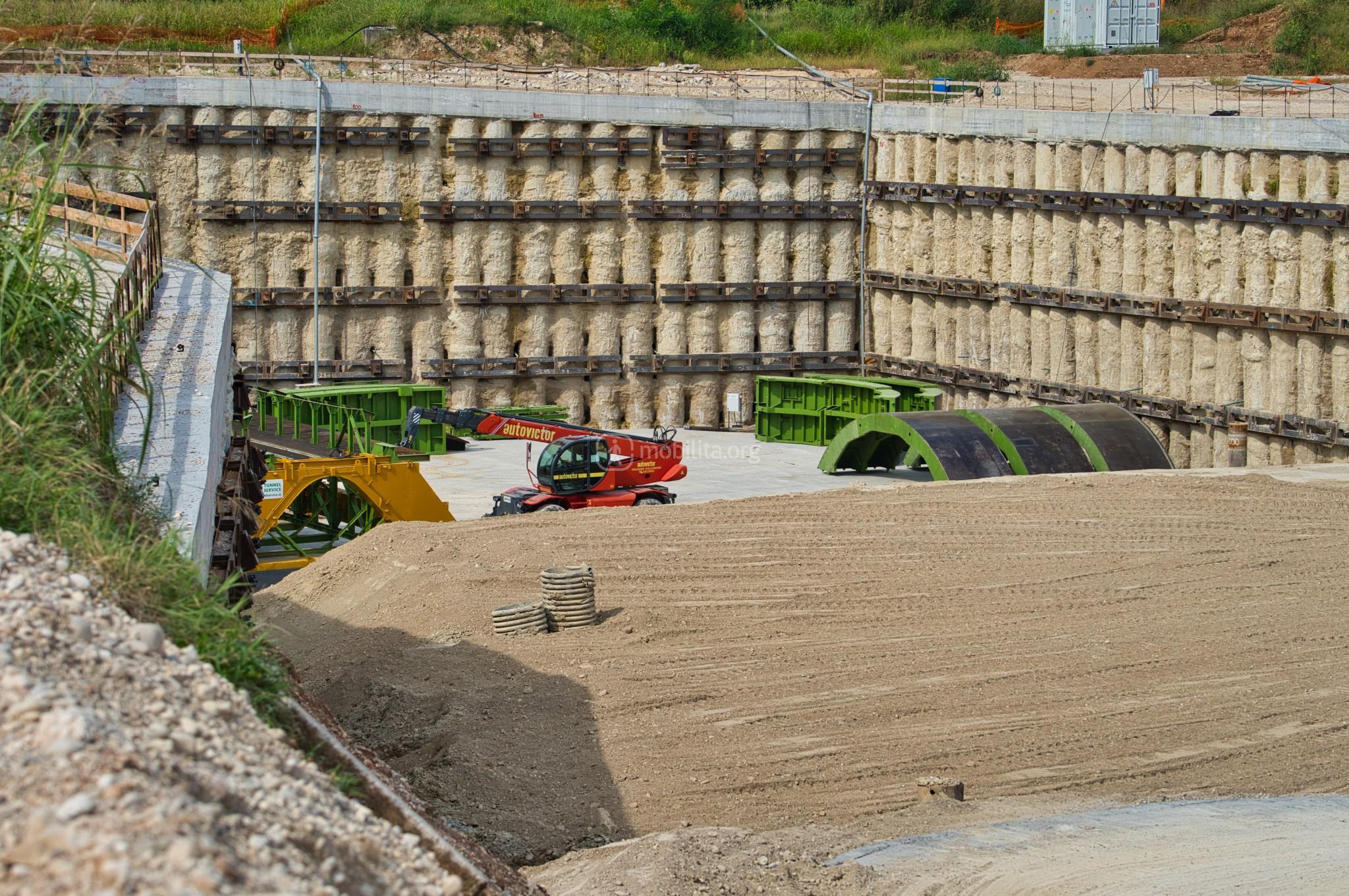 Ci spostiamo nel cantiere di Lonato Est dove terminerà la galleria scavata con la TBM e dove sono in corso le attività di realizzazione della fossa di uscita.