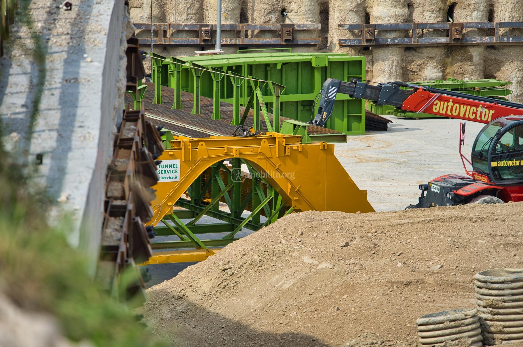 La talpa è stata già introdotta nei primi metri del tunnel per permettere l’assemblaggio dei vari carri che costituiscono il grosso serpentone.