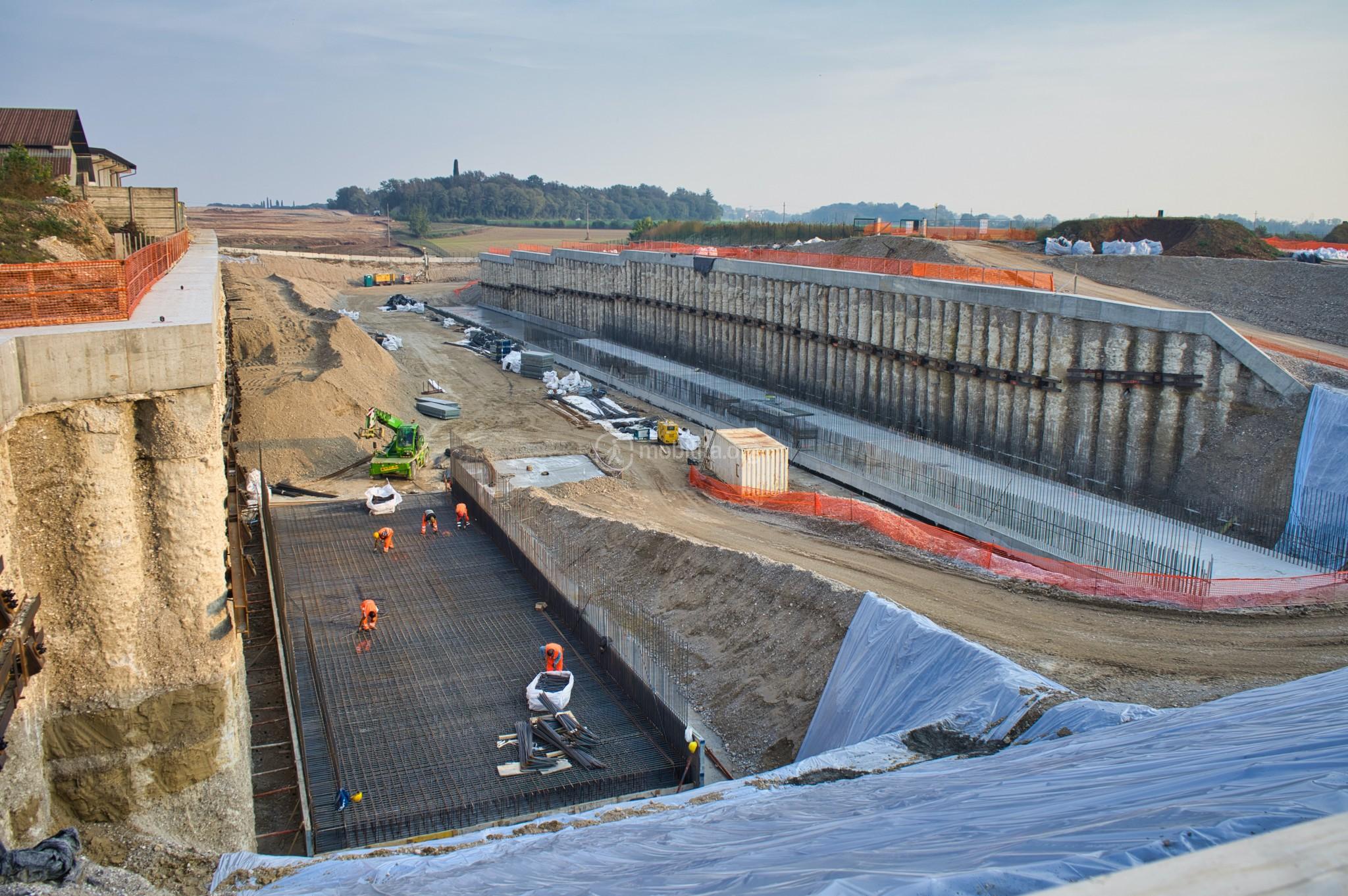 Ci spostiamo nel cantiere di Lonato Est dove terminerà la galleria scavata con la TBM e dove sono in corso le attività di realizzazione della fossa di uscita.