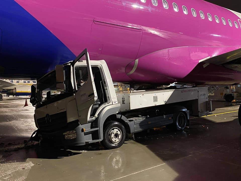 Un Airbus A320neo della compagnia aerea Wizz Air è stato danneggiato giovedì mattina a Danzica, in Polonia, da una cisterna che stava per alimentare l’aereo con acqua.