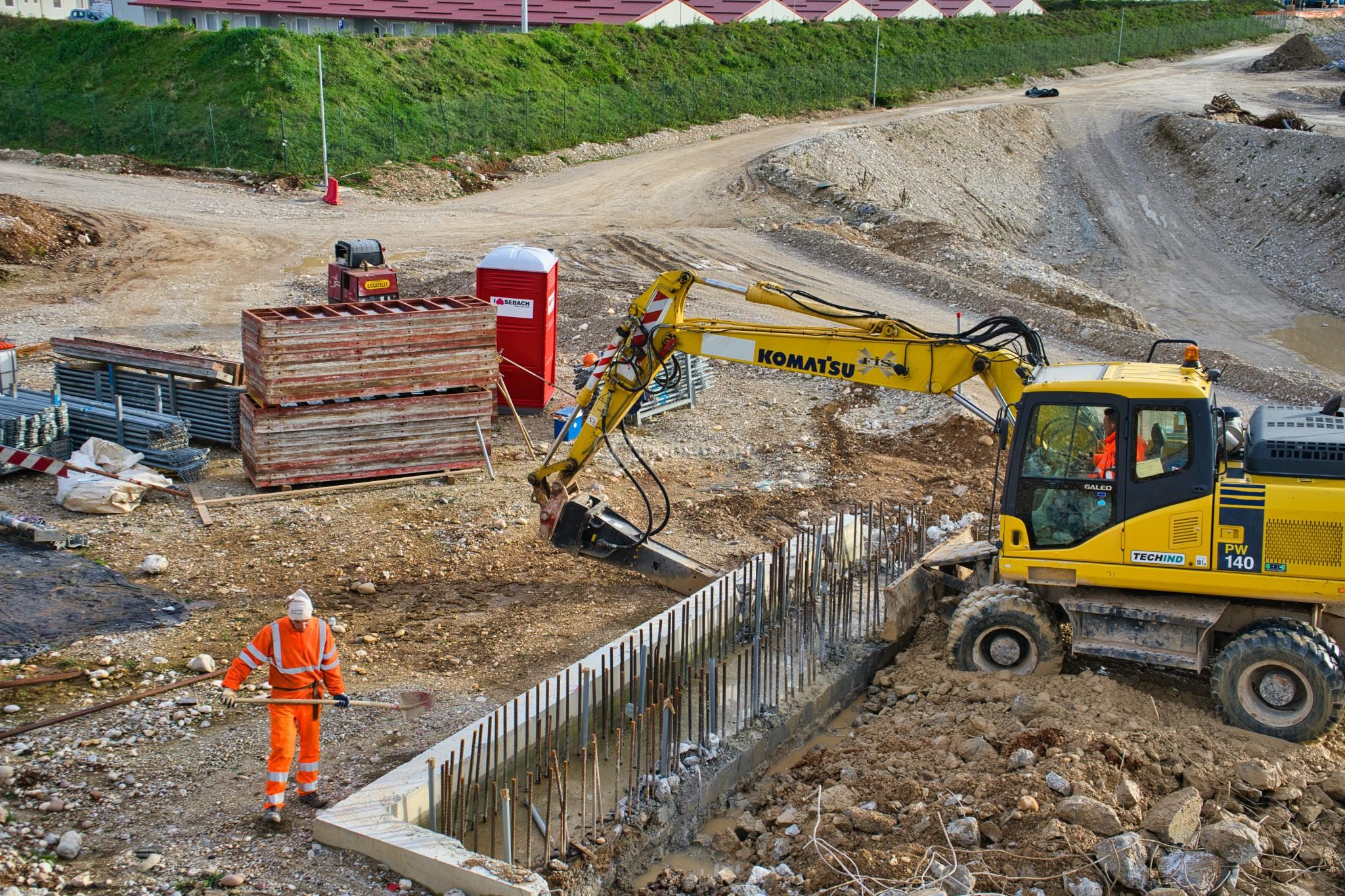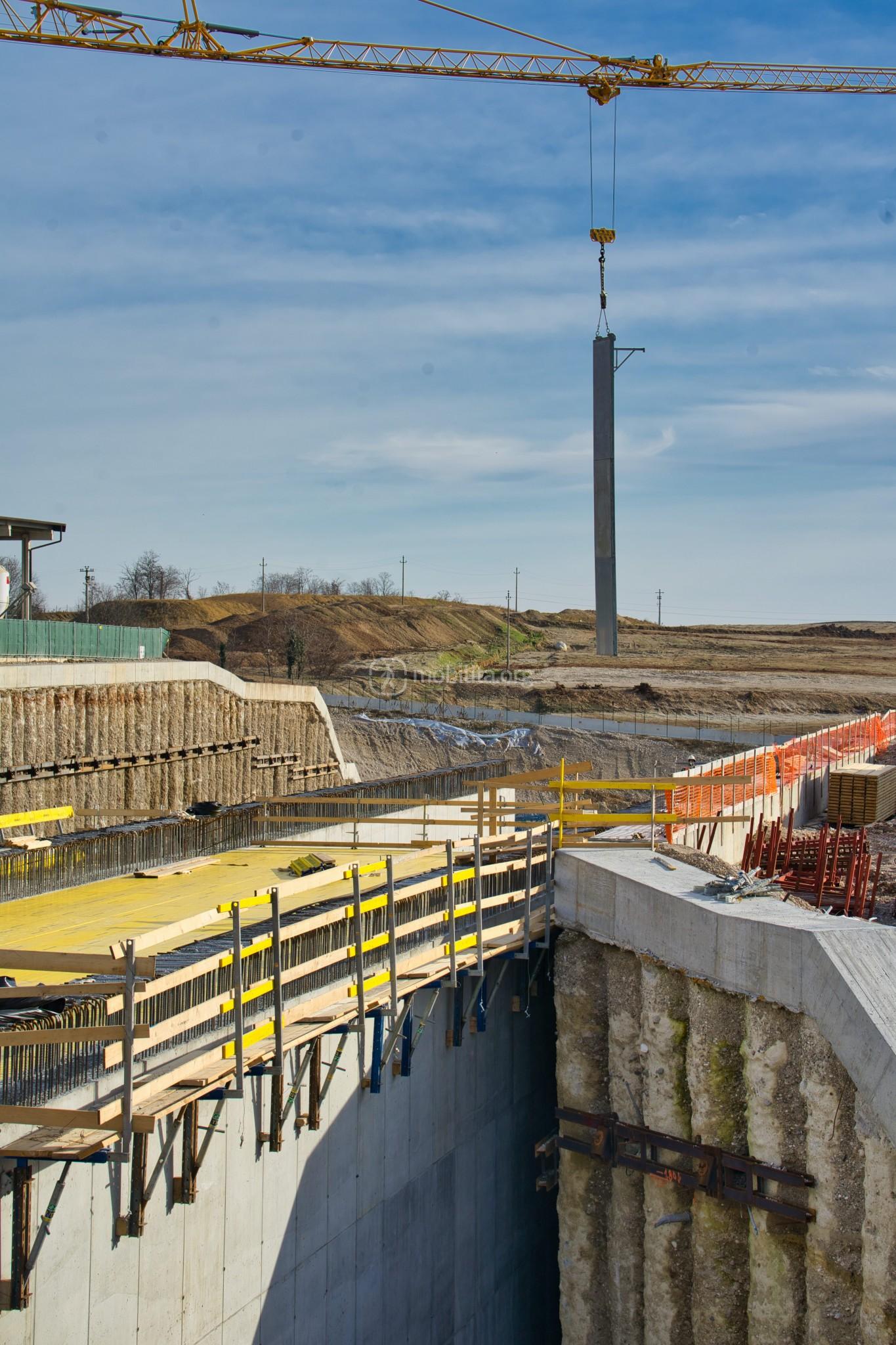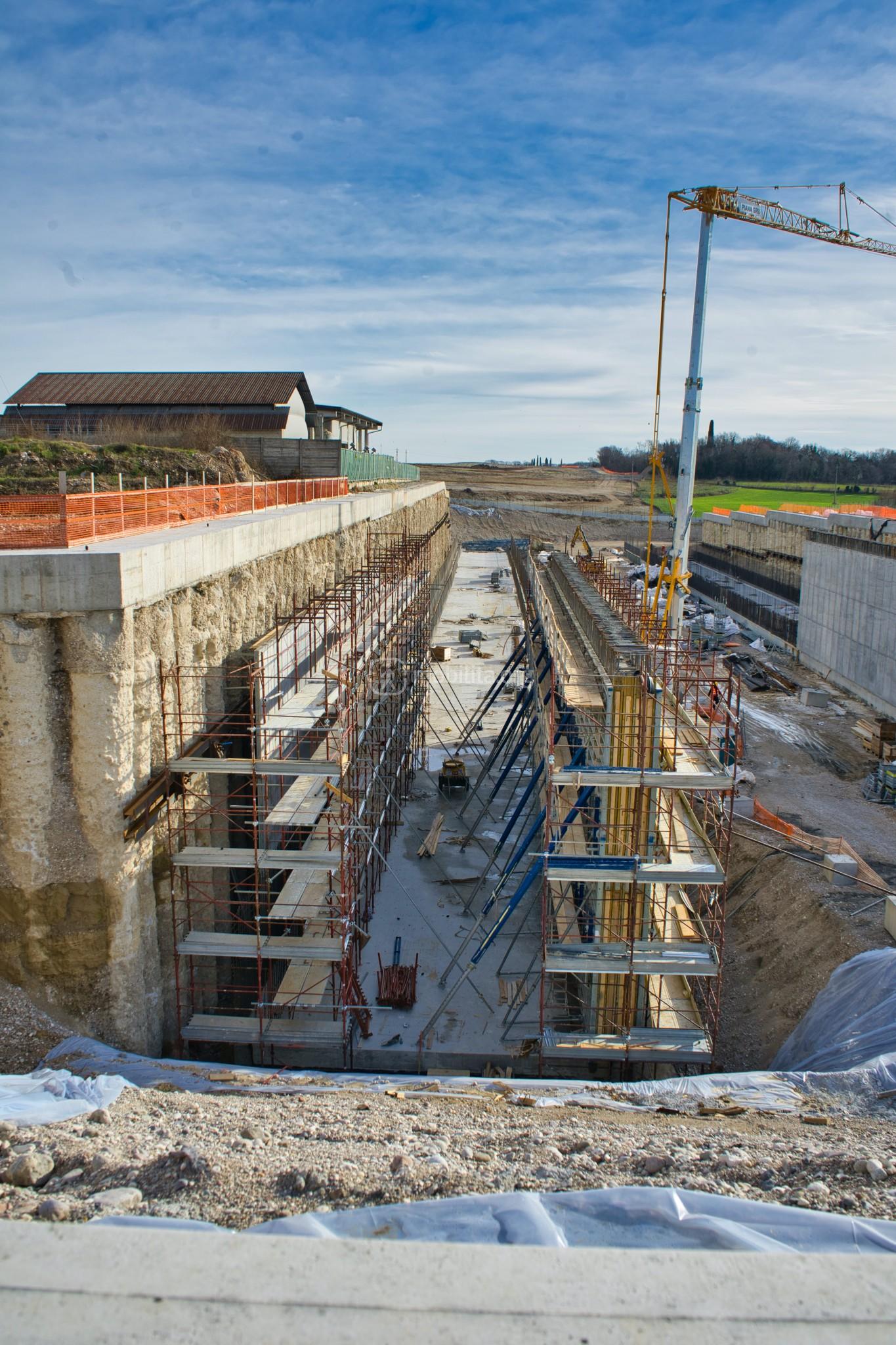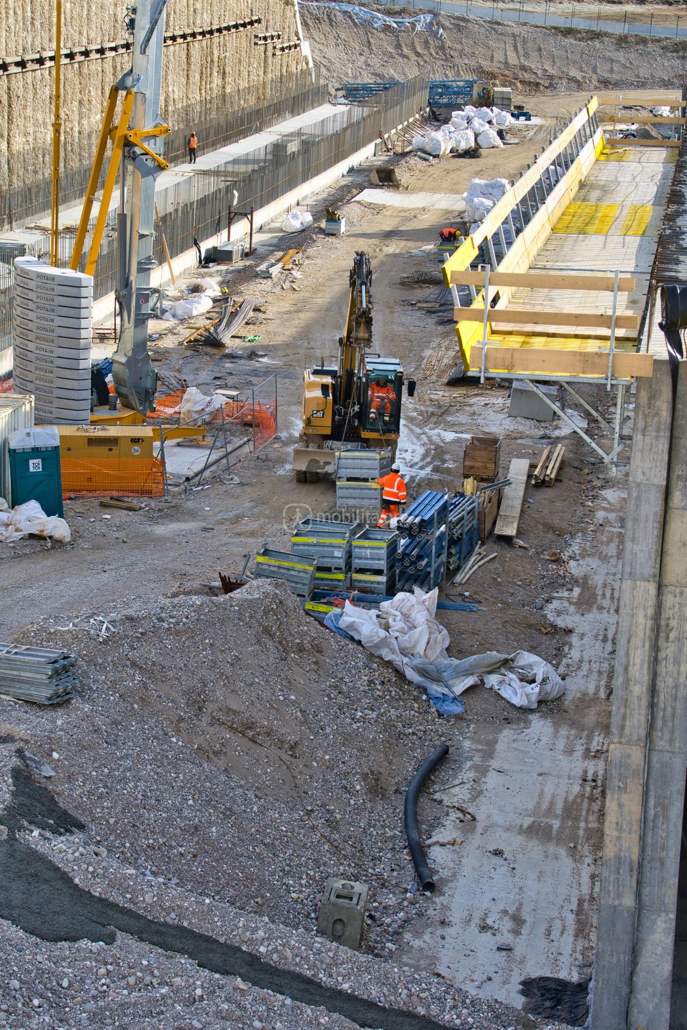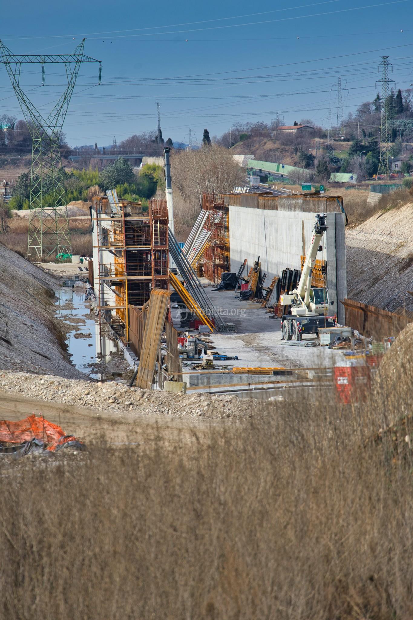 Si stanno ultimando la costruzione del monolite IN77 che verrà spinto sotto la linea storica e la realizzazione dei muri per il tratto di deviazione.