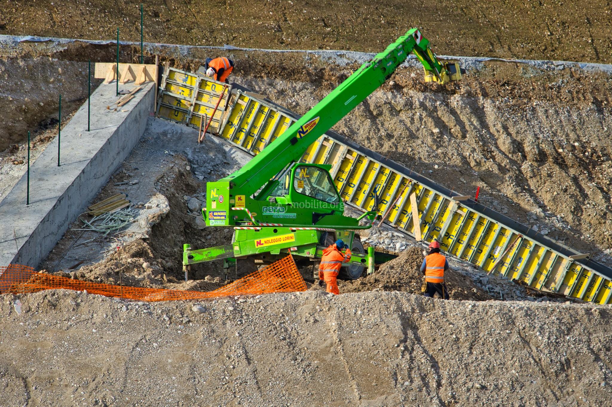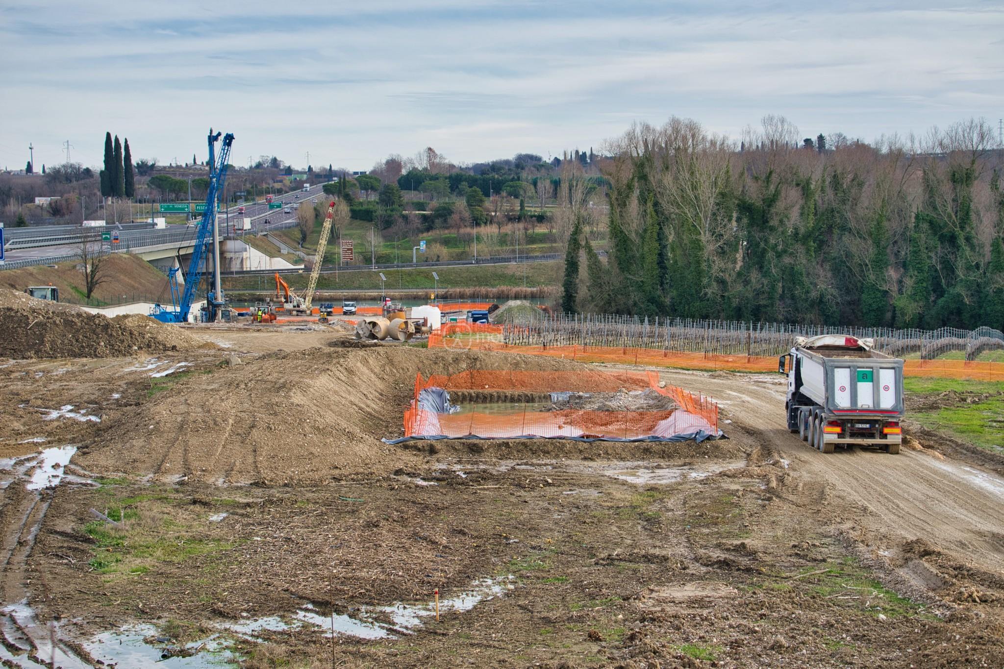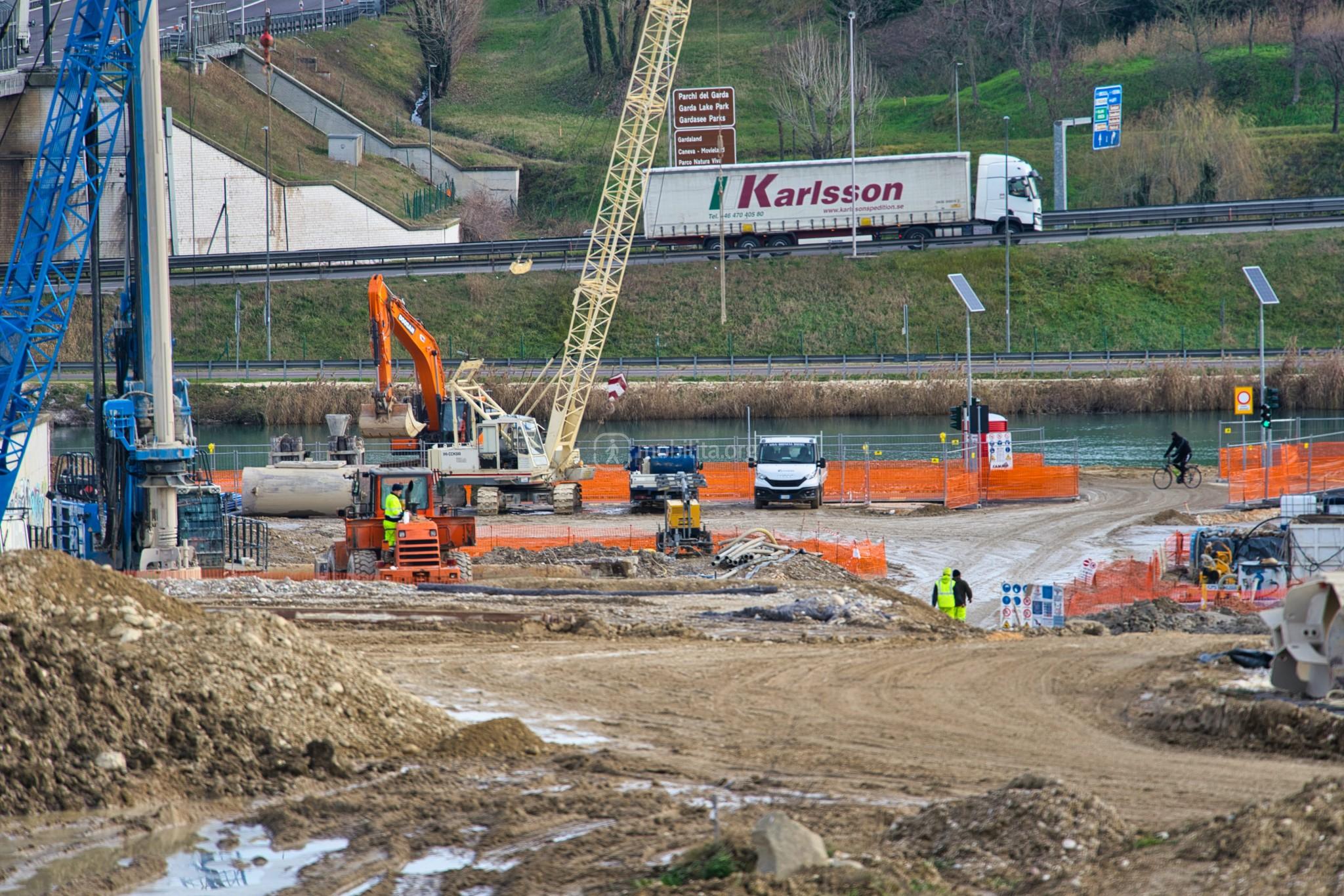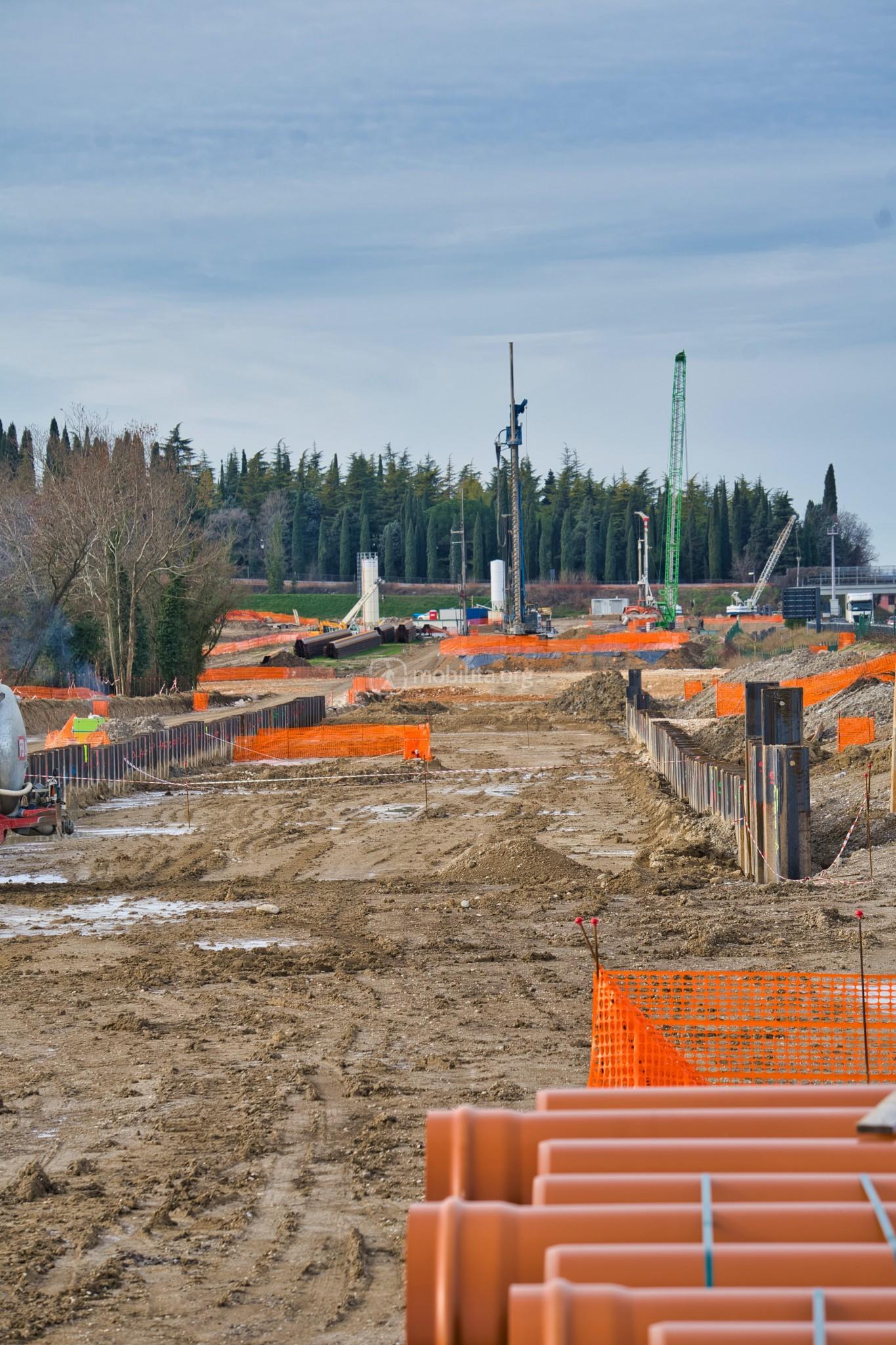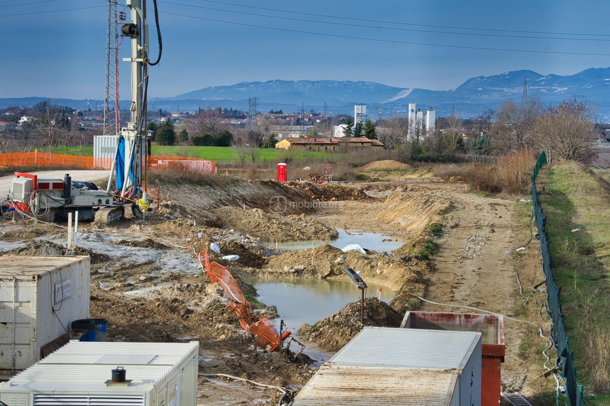 Tante le maestranze a lavoro nei pressi del fiume Mincio, dove si sta lavorando per preparare le fondazione del ponte ferroviario che scavalcherà il fiume e che sarà una delle opere principali della nuova tratta ferroviaria