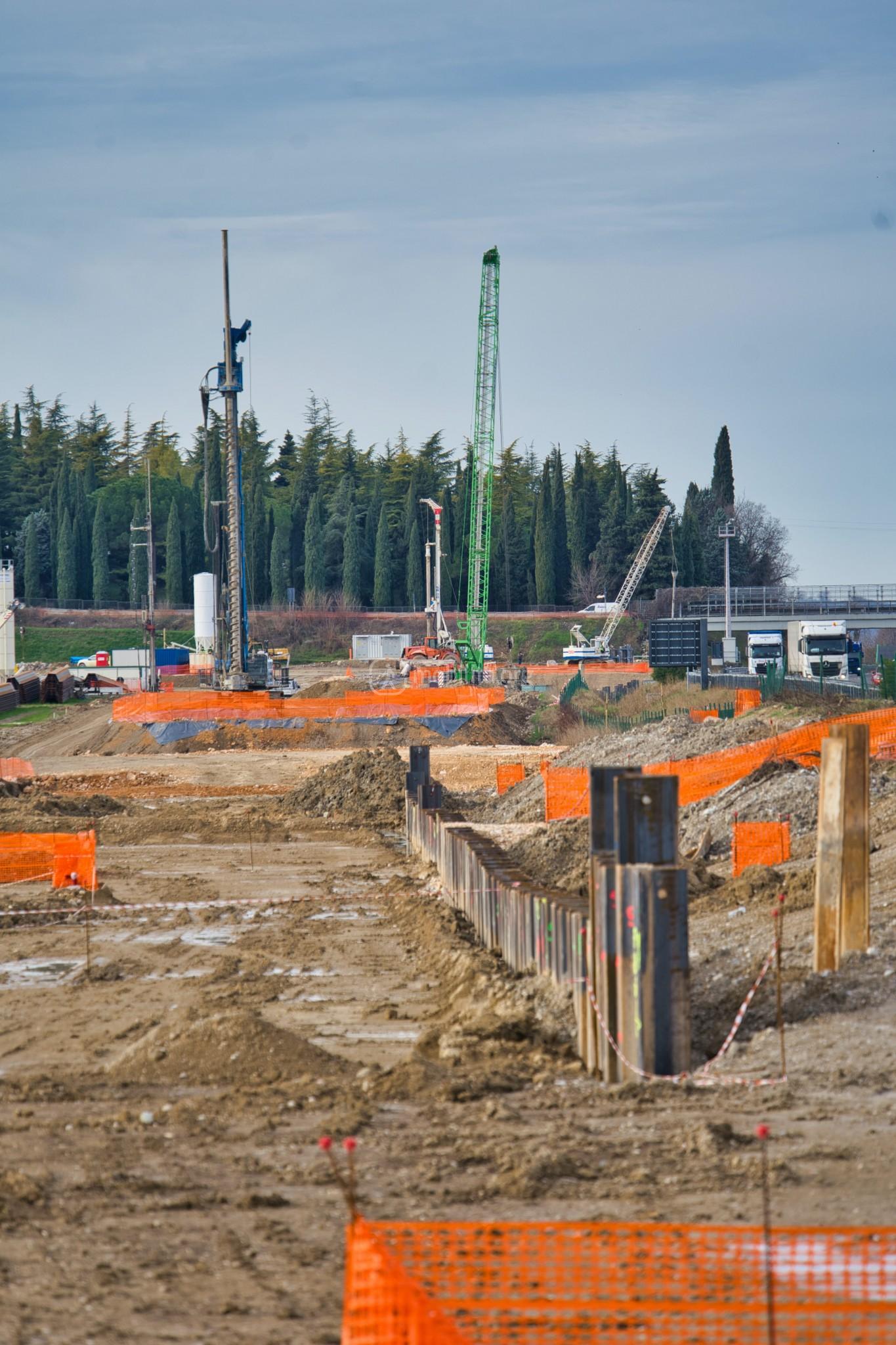 Ci spostiamo nel cantiere di Lonato Est dove terminerà la galleria scavata con la TBM e dove sono in corso le attività di realizzazione della fossa di uscita.