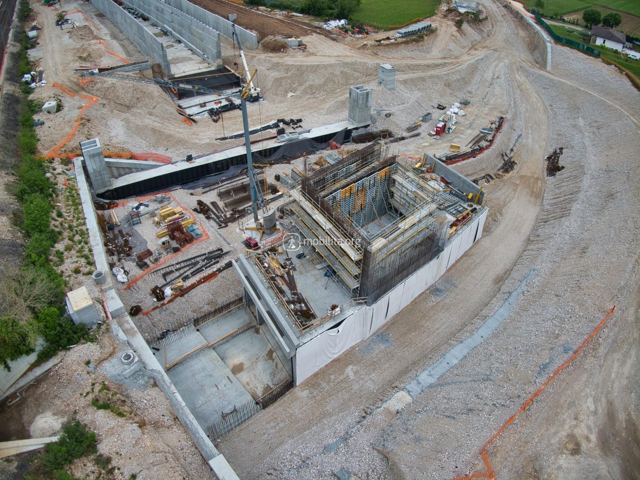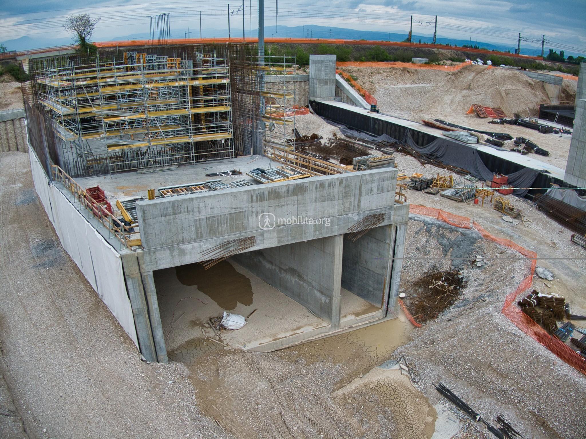 Lato valle il cantiere prosegue la sua avanzata verso Verona. Le due gallerie sono nel primo tratto già ultimate almeno strutturalmente e si è proseguito il riempimento dell’area tra le due gallerie.