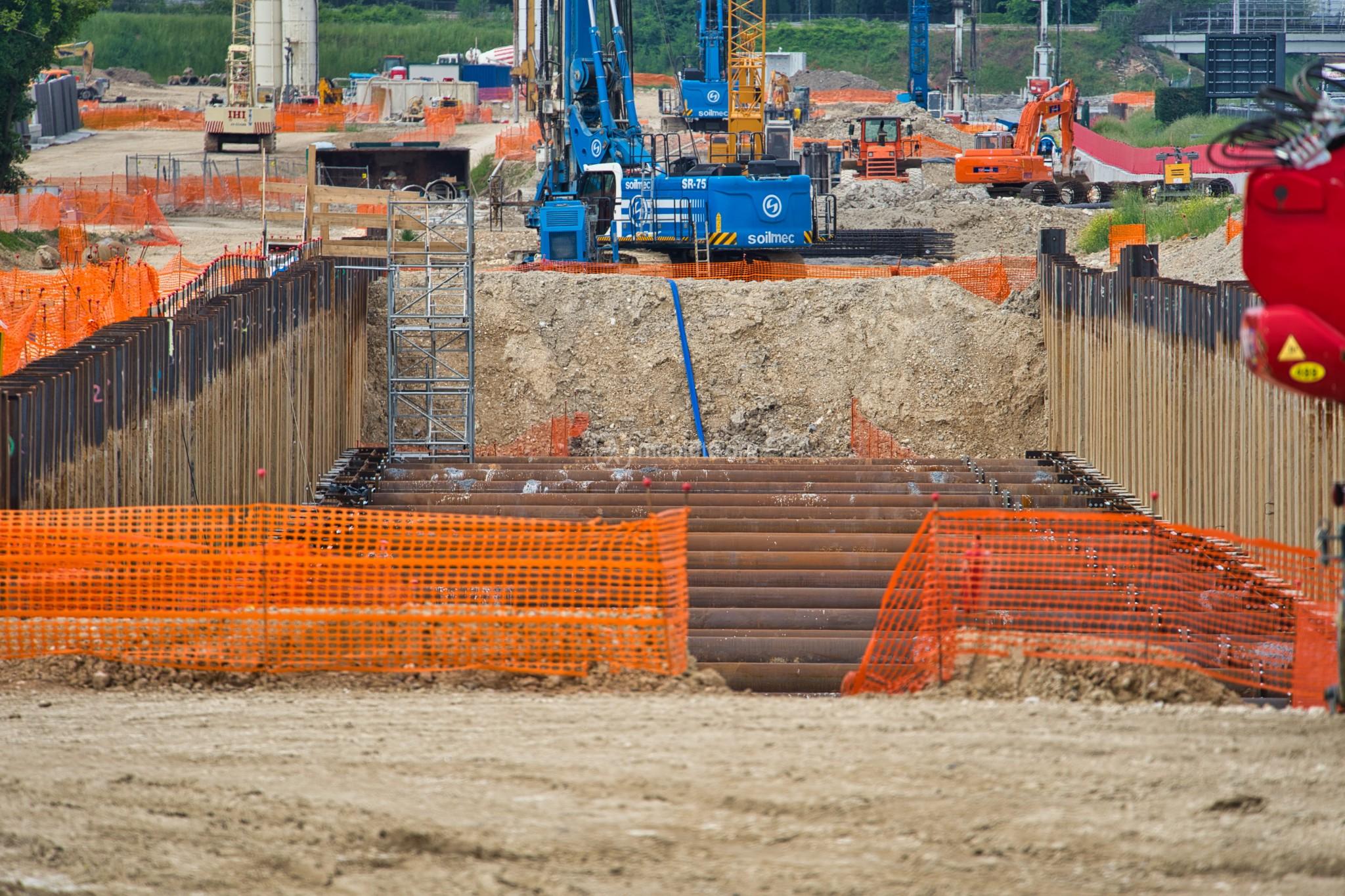 Ci spostiamo nel cantiere di Lonato Est dove terminerà la galleria scavata con la TBM e dove sono in corso le attività di realizzazione della fossa di uscita.