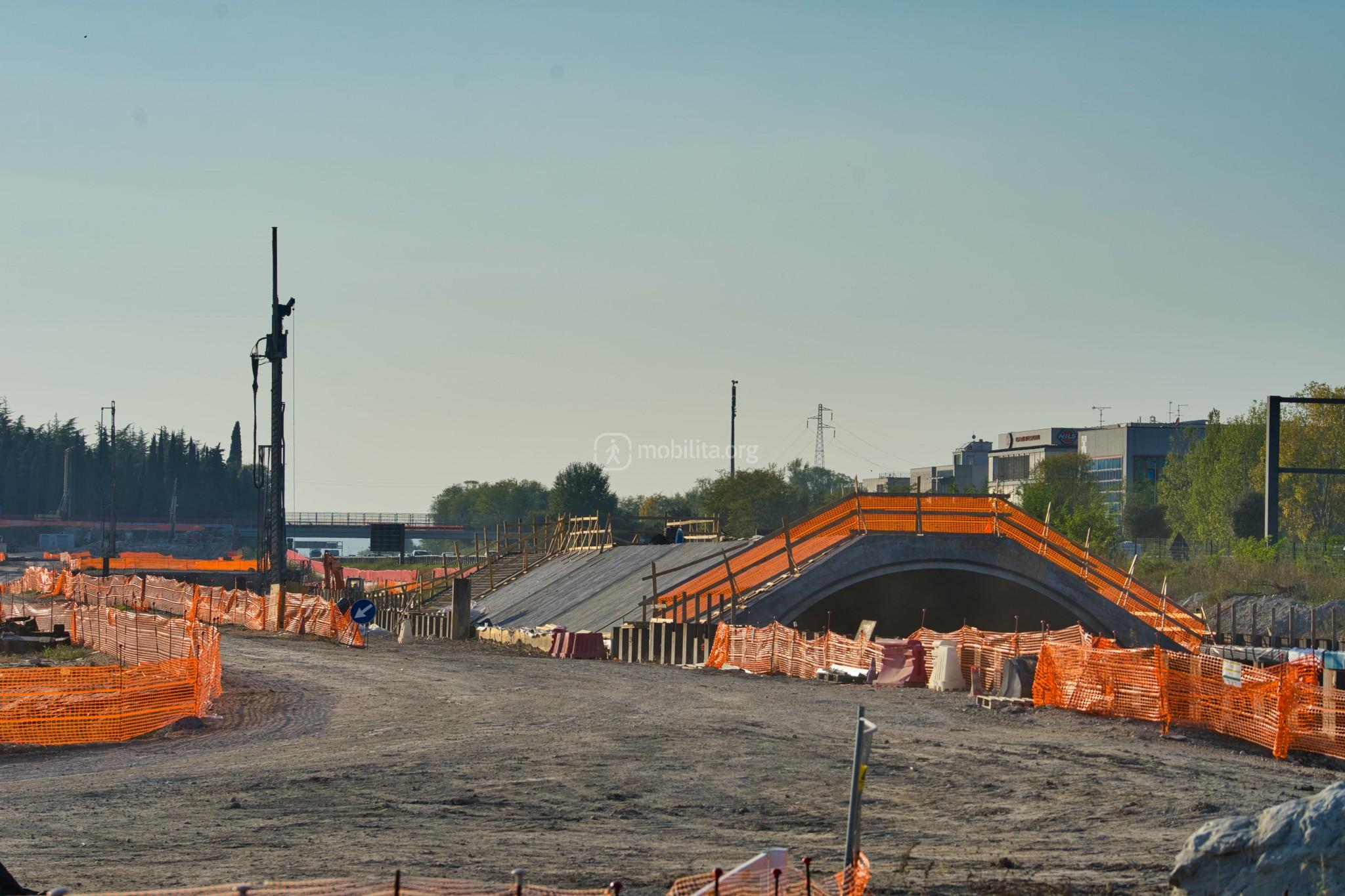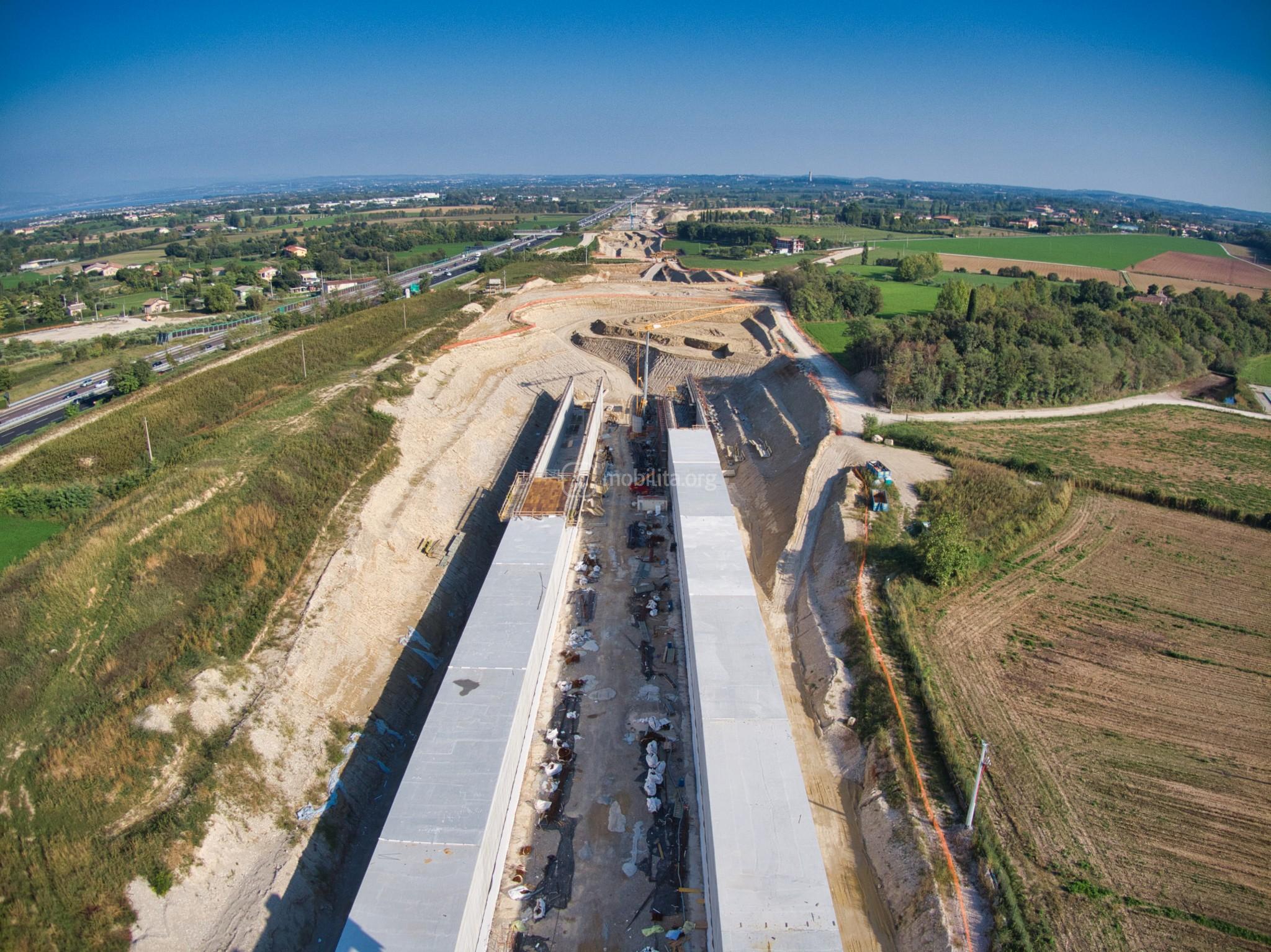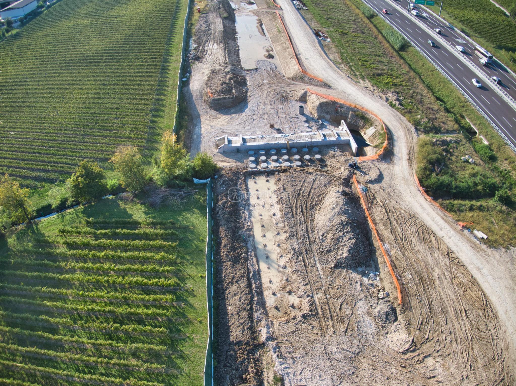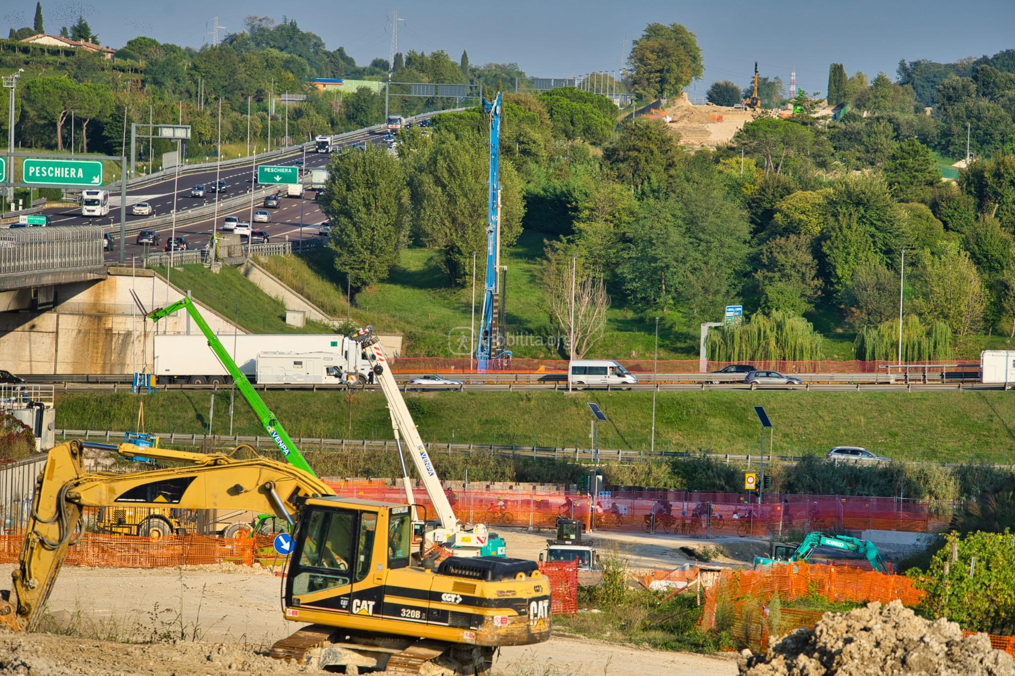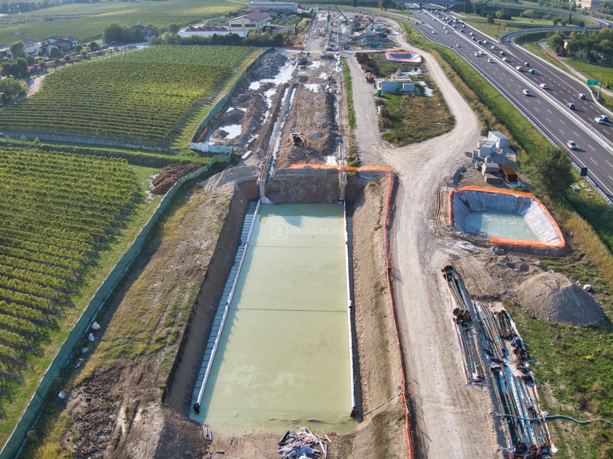 Lato valle il cantiere prosegue la sua avanzata verso Verona. Le due gallerie sono nel primo tratto già ultimate almeno strutturalmente e si è proseguito il riempimento dell’area tra le due gallerie.