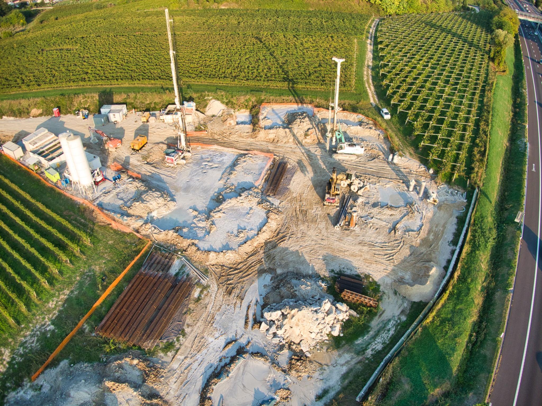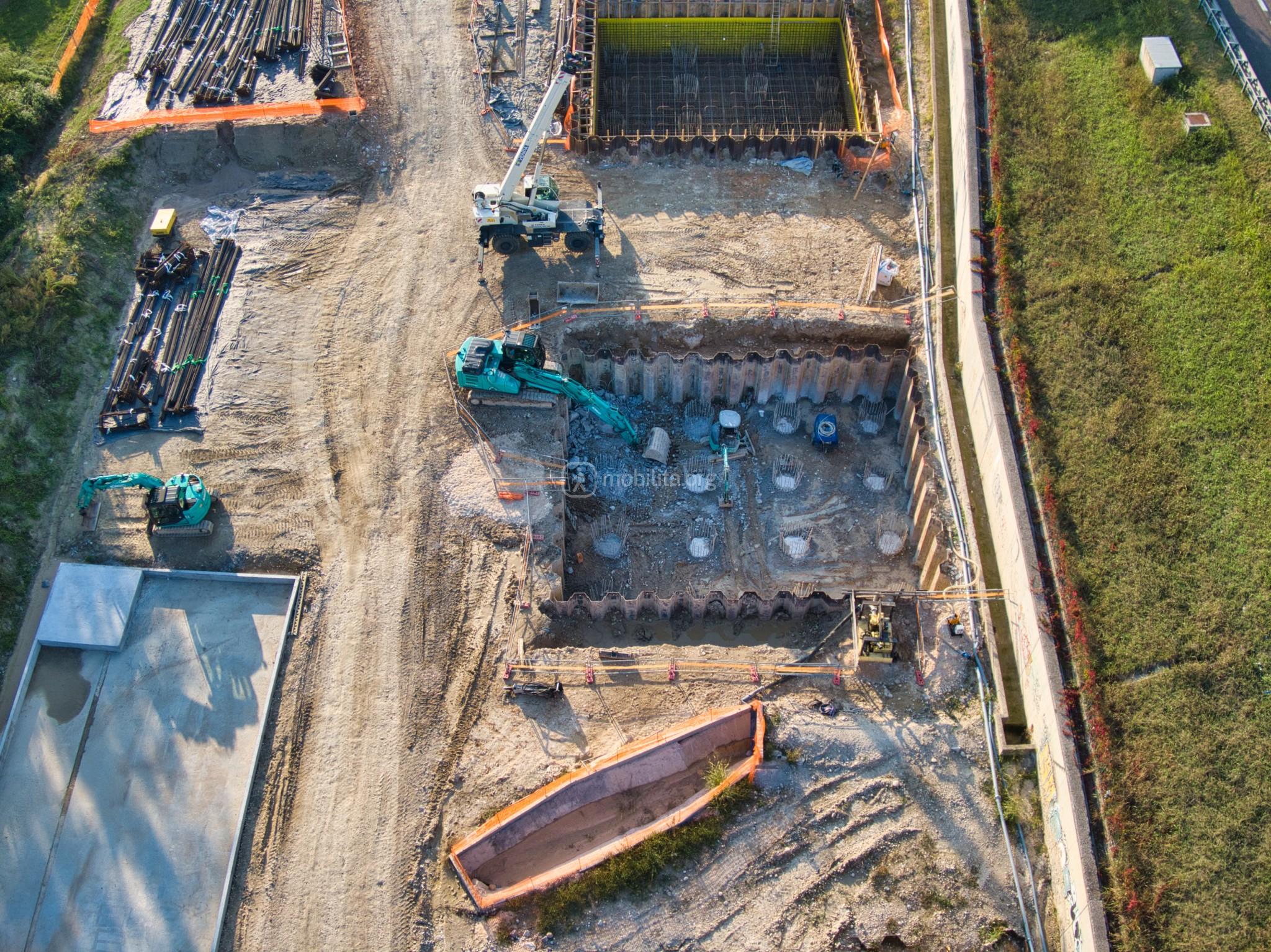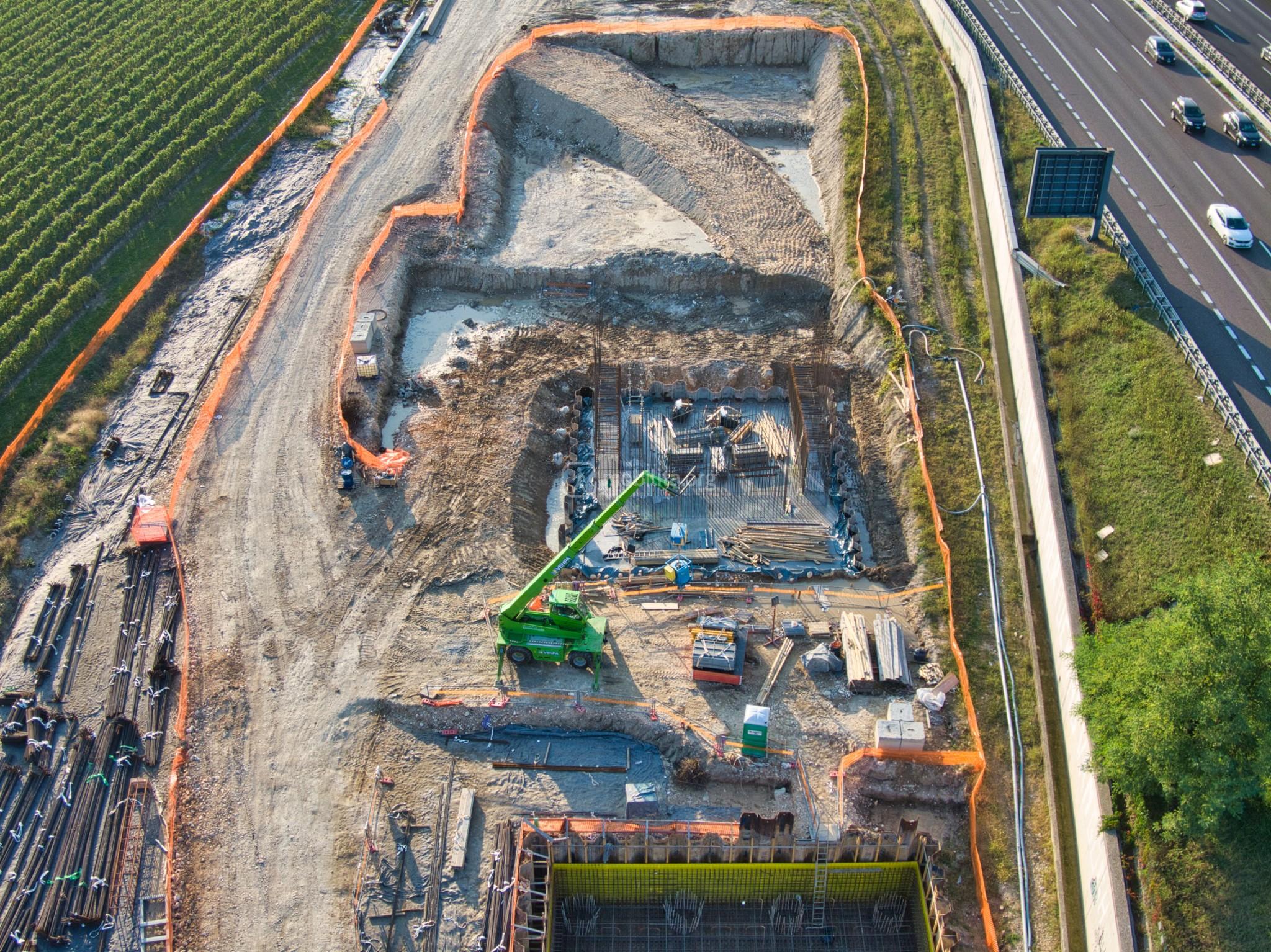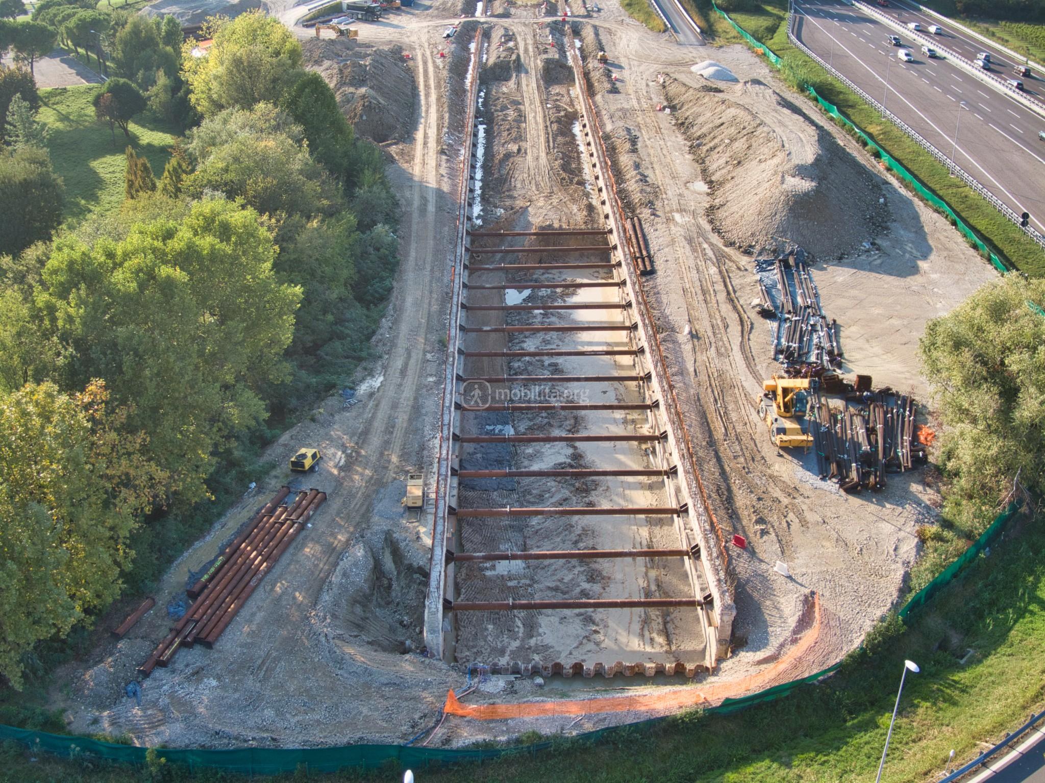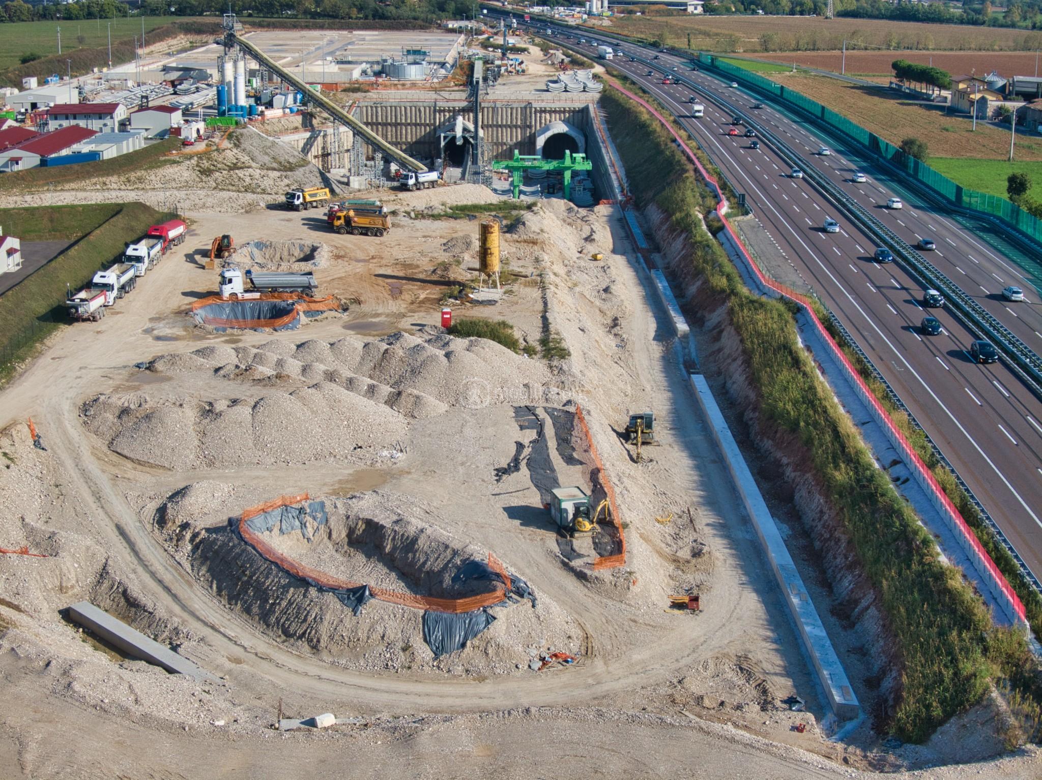 Ci spostiamo nel cantiere di Lonato Est dove terminerà la galleria scavata con la TBM e dove sono in corso le attività di realizzazione della fossa di uscita.