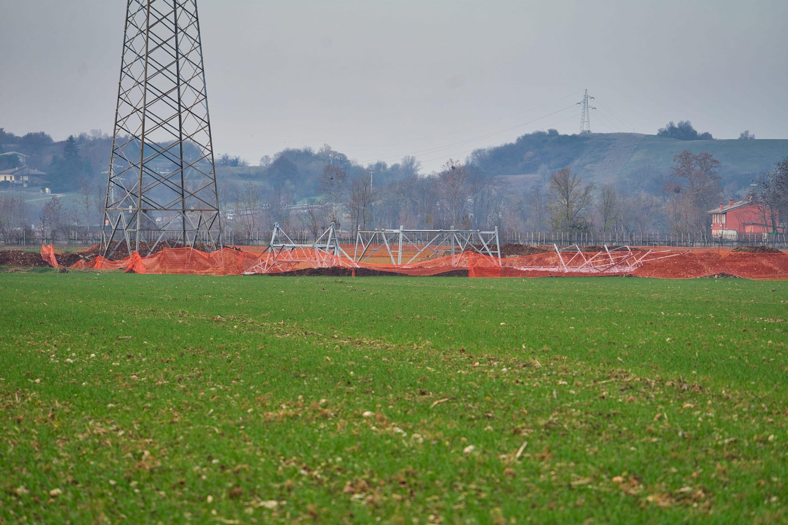Si stanno assemblando i nuovi pali che reggeranno i cavi di AT che sostituiranno gli esistenti, probabilmente per rimuovere le interferenze.