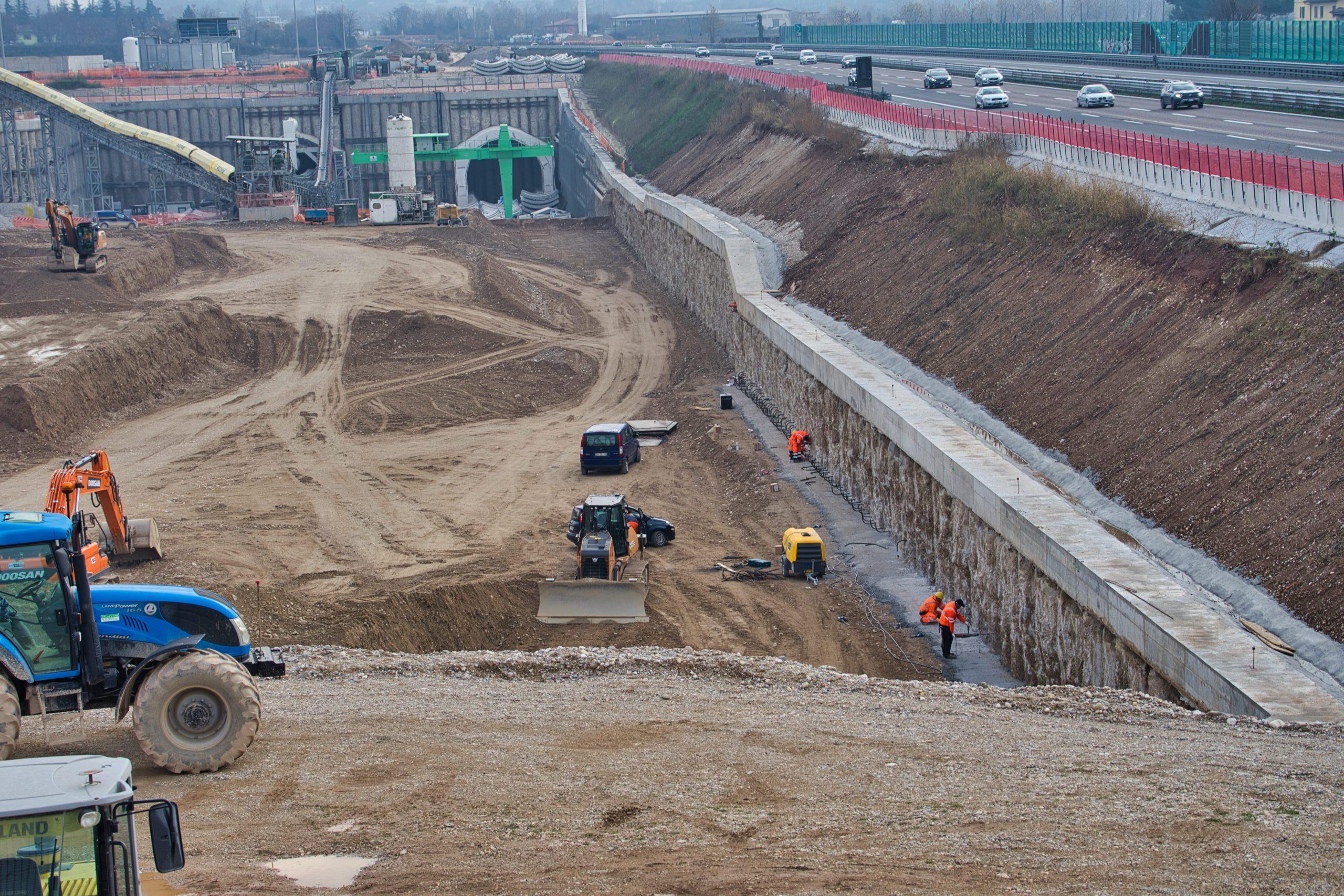 Ci spostiamo nel cantiere di Lonato Est dove terminerà la galleria scavata con la TBM e dove sono in corso le attività di realizzazione della fossa di uscita.