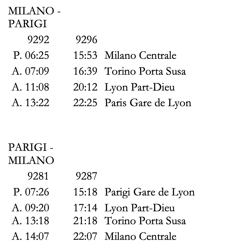 L’esperienza di FS Italiane nell’ambito dell’alta velocità arriva oltralpe con due corse al giorno di andata e ritorno tra Paris Gare de Lyon e Milano Centrale, passando per Lyon Part Dieu, Chambéry, Modane e Torino.