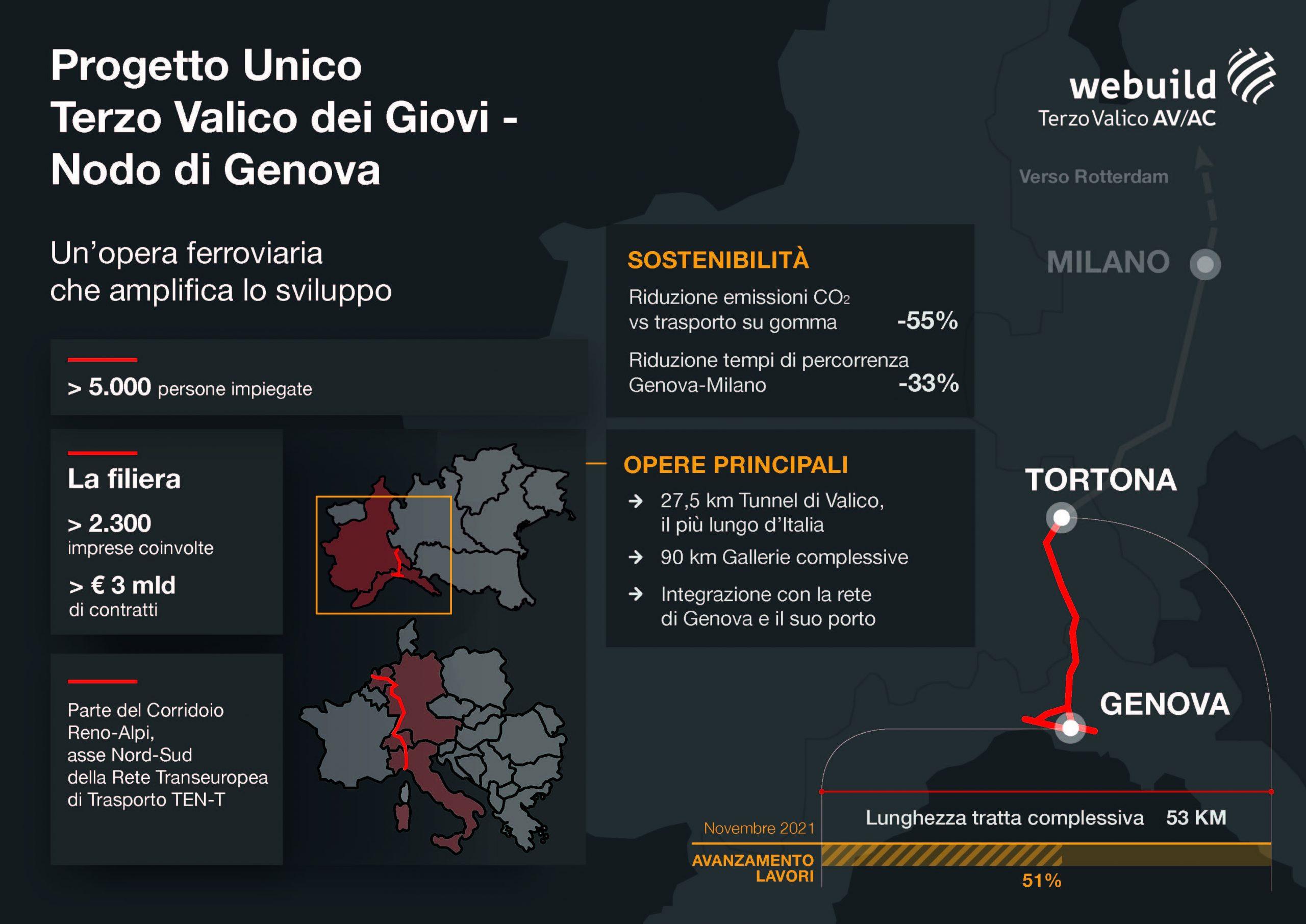 In termini di sostenibilità, favorirà una riduzione del 33% dei tempi di percorrenza tra Genova e Milano, con conseguente riduzione del 55% delle emissioni di CO2 rispetto al trasporto su gomma.