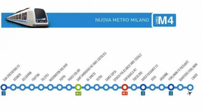 La M4 o “Linea blu” collegherà il centro storico con la parte Est (Q.re Forlanini e Aeroporto Linate) e con la parte Ovest (Q.re Lorenteggio e Stazione San Cristoforo).
