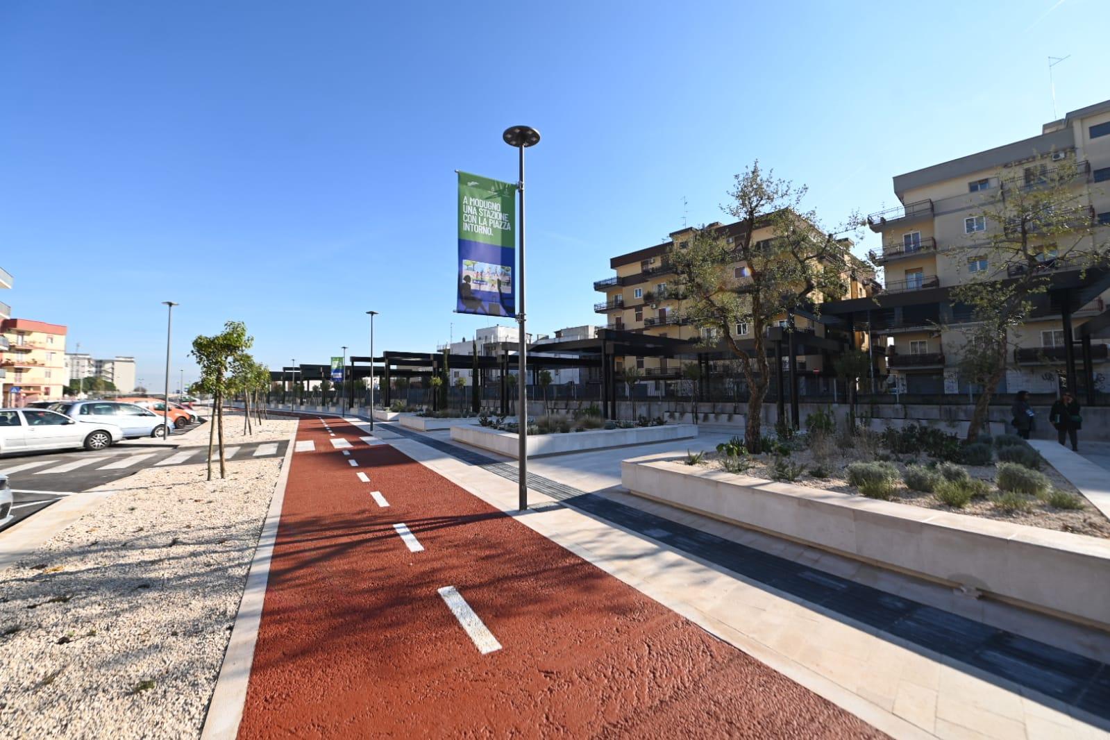 Ottomila metri quadri, parcheggi per auto e bici, 1,8 chilometri di piste ciclabili, un playground, un’area gioco per bambini ed una di sgambamento per cani. Sono le caratteristiche della nuova piazza realizzata da Ferrovie Appulo Lucane nell’area circostante la stazione interrata di Modugno, al termine di un grande intervento di riqualificazione proposto da Fal e Assessorato ai Trasporti della Regione Puglia e condiviso dal Comune di Modugno ed inaugurata ieri con una vera e propria festa che ha visto la partecipazione di circa 80 alunni di scuole elementari dei 3 circoli didattici di Modugno, artisti di strada, una banda (la Vagaband), alla presenza del Presidente della Regione Puglia, Michele Emiliano; dell’assessore regionale ai Trasporti, Anita Maurodinoia,; del Sindaco di Modugno, Nicola Bonasia; del Presidente e del Direttore Generale di Fal, Rosario Almiento e Matteo Colamussi.