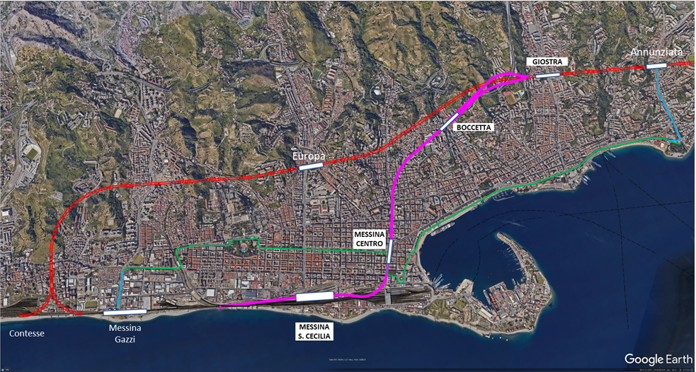 attestamento treni regionali), la fermata Europa e le stazioni Annunziata e Papardo (in galleria).