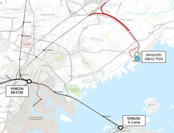 Circa 8 chilometri di nuova linea ferroviaria per connettere l’aeroporto di Venezia Marco Polo alla rete ferroviaria nazionale, così da potenziare l’intermodalità treno-aereo e incentivare i passeggeri ad utilizzare il treno per i propri spostamenti, anche in vista dell’aumento dei flussi turistici sul territorio in occasione delle Olimpiadi invernali di Milano Cortina 2026.