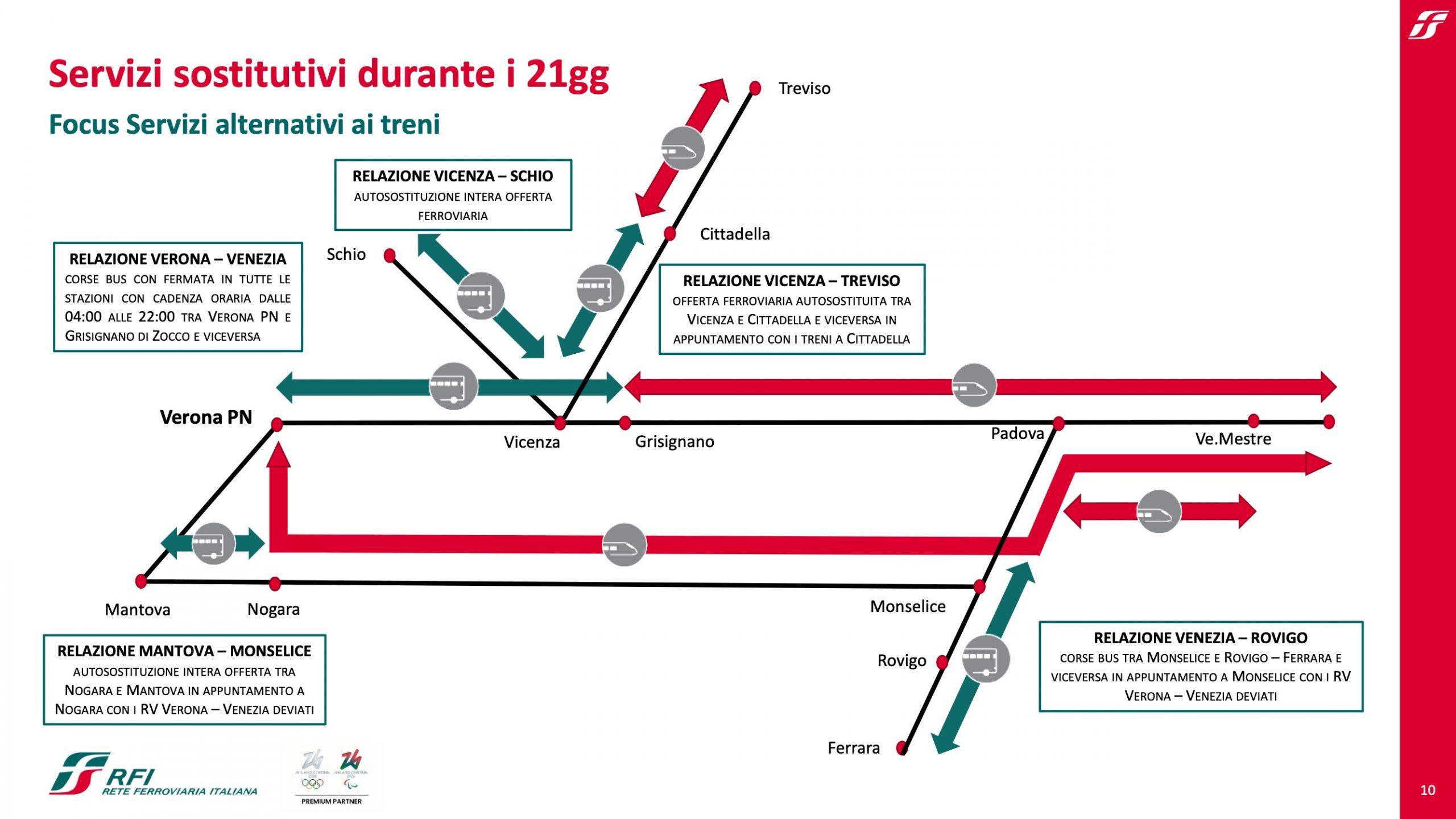 Per garantire l’offerta commerciale nelle tratte interessate, sarà attivato un servizio bus gestito dalle aziende di trasporto ferroviario.