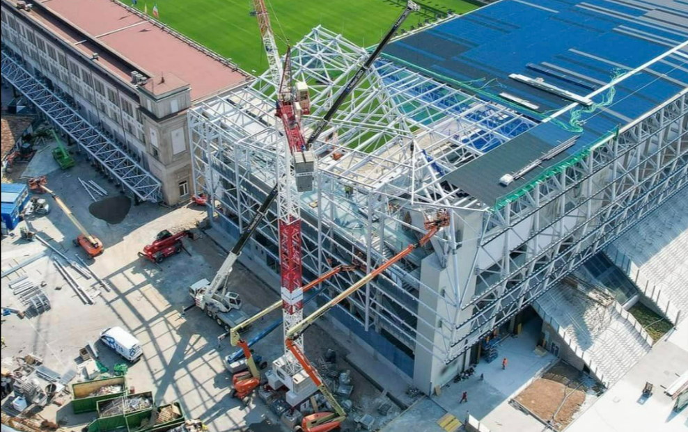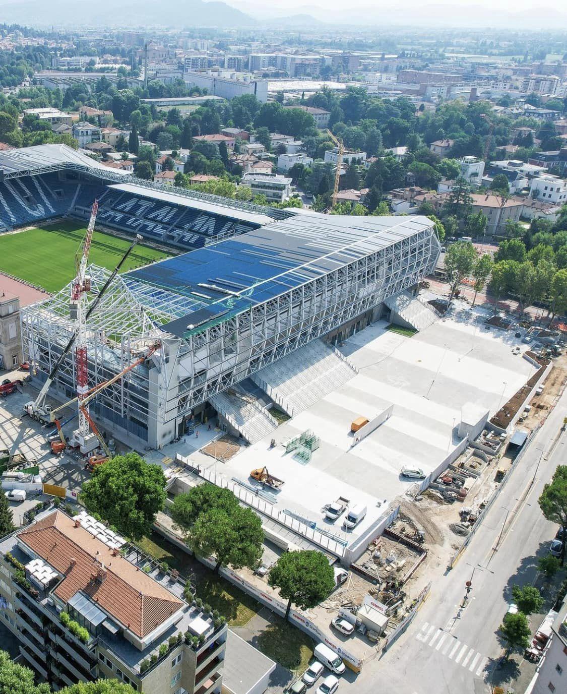 Nell’ultimo aggiornamento, pubblicato il 1 agosto 2024 sul profilo Instagram ufficiale del Gewiss Stadium, si può vedere chiaramente come la struttura della tribuna Morosini sia ormai quasi completa.