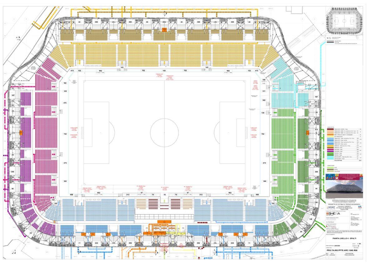 Ogni livello sarà dotato di servizi igienici, mentre le tribune saranno progettate con nuove inclinazioni per ottimizzare la visibilità da qualsiasi posto.
