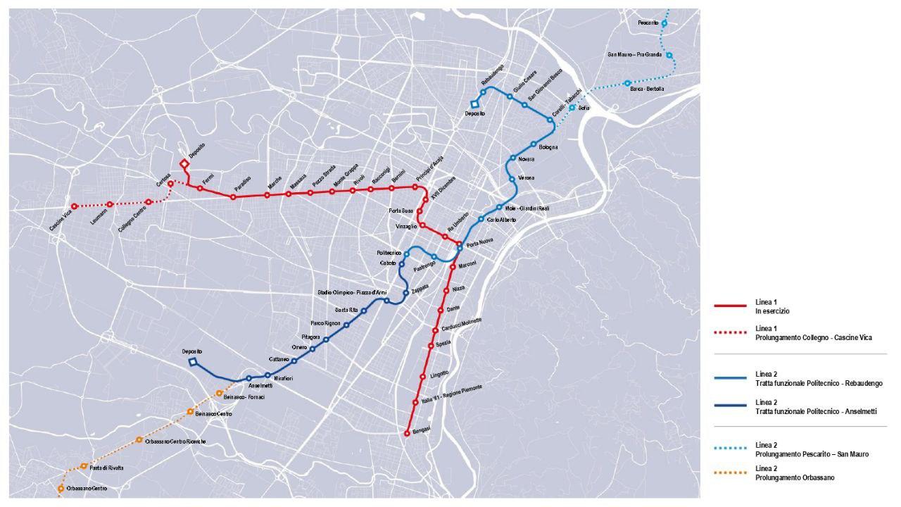 La realizzazione dell’intera linea 2 è prevista per lotti successivi in funzione dei finanziamenti pubblici stanziati. Attualmente, sono disponibili i finanziamenti per la realizzazione del primo lotto funzionale che si estenderà dalla stazione di Rebaudengo a Porta Nuova, per uno sviluppo complessivo di circa 8 km e 10 stazioni, con la prospettiva di raggiungere il Politecnico in presenza di ulteriori risorse (per una lunghezza di circa 2 km e 2 stazioni).