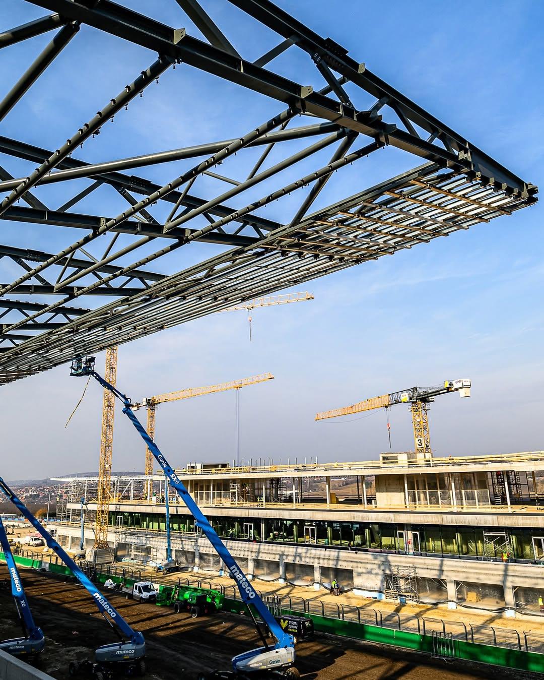 Un traguardo significativo nella fase di costruzione è l’installazione della pesante copertura in acciaio, che entro la prossima settimana raggiungerà il 50% del completamento.