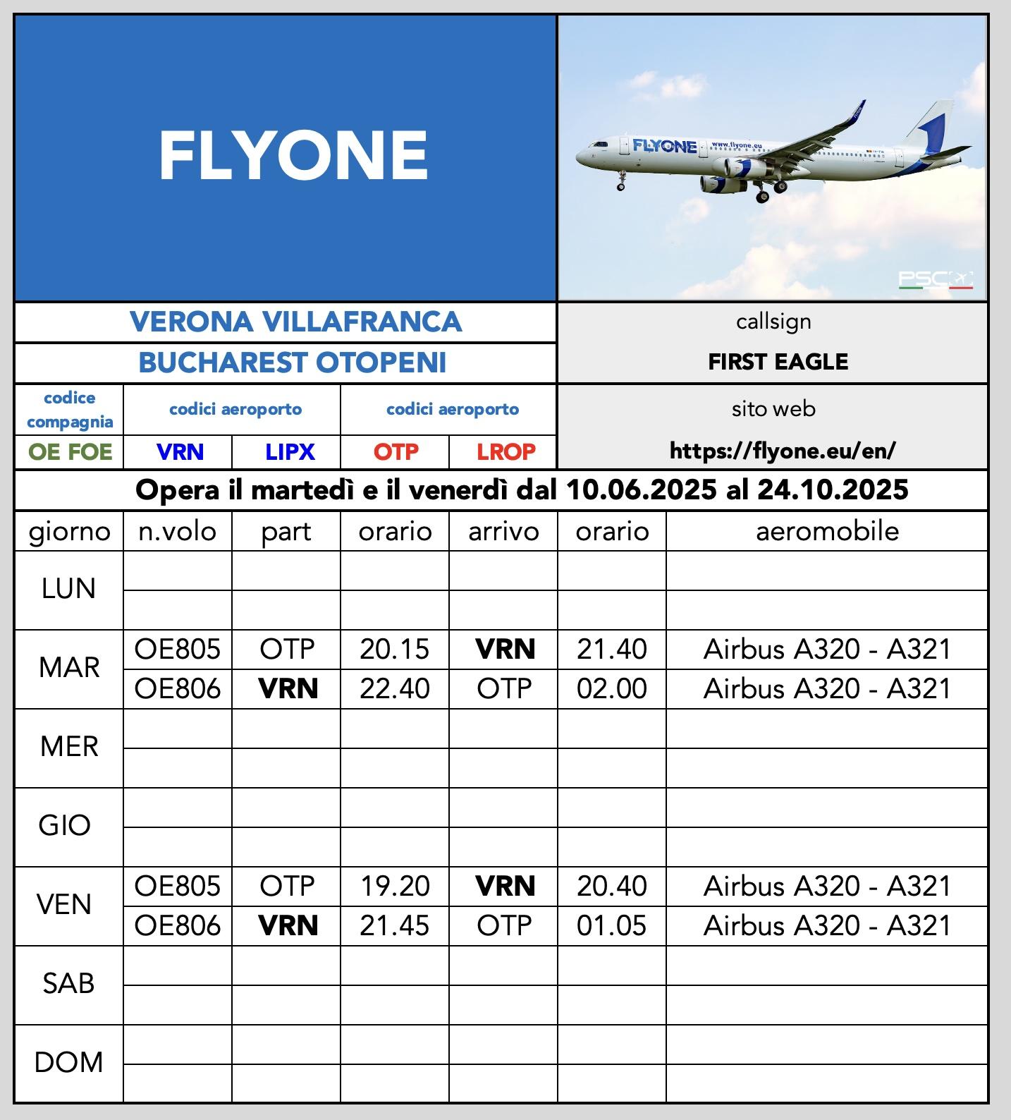 Dal prossimo 10 giugno, la compagnia aerea FlyOne inaugurerà un nuovo collegamento tra Verona e Bucarest Otopeni.