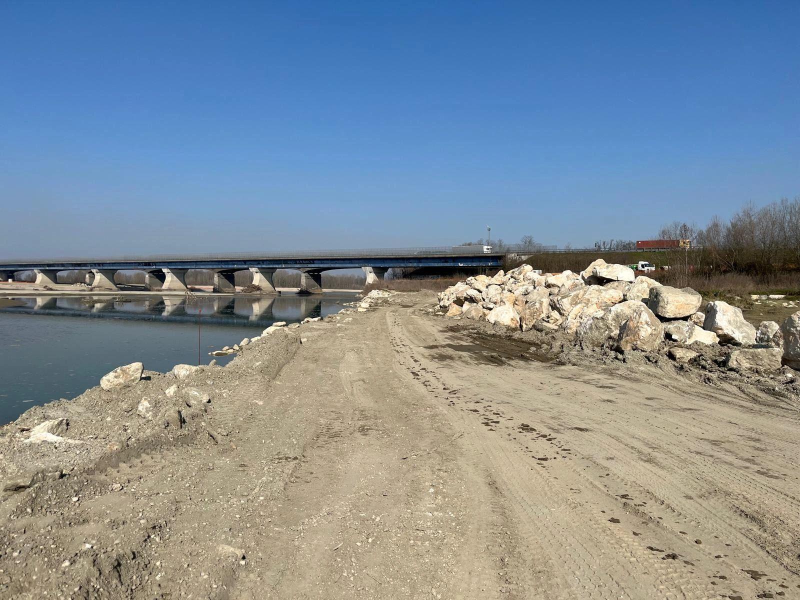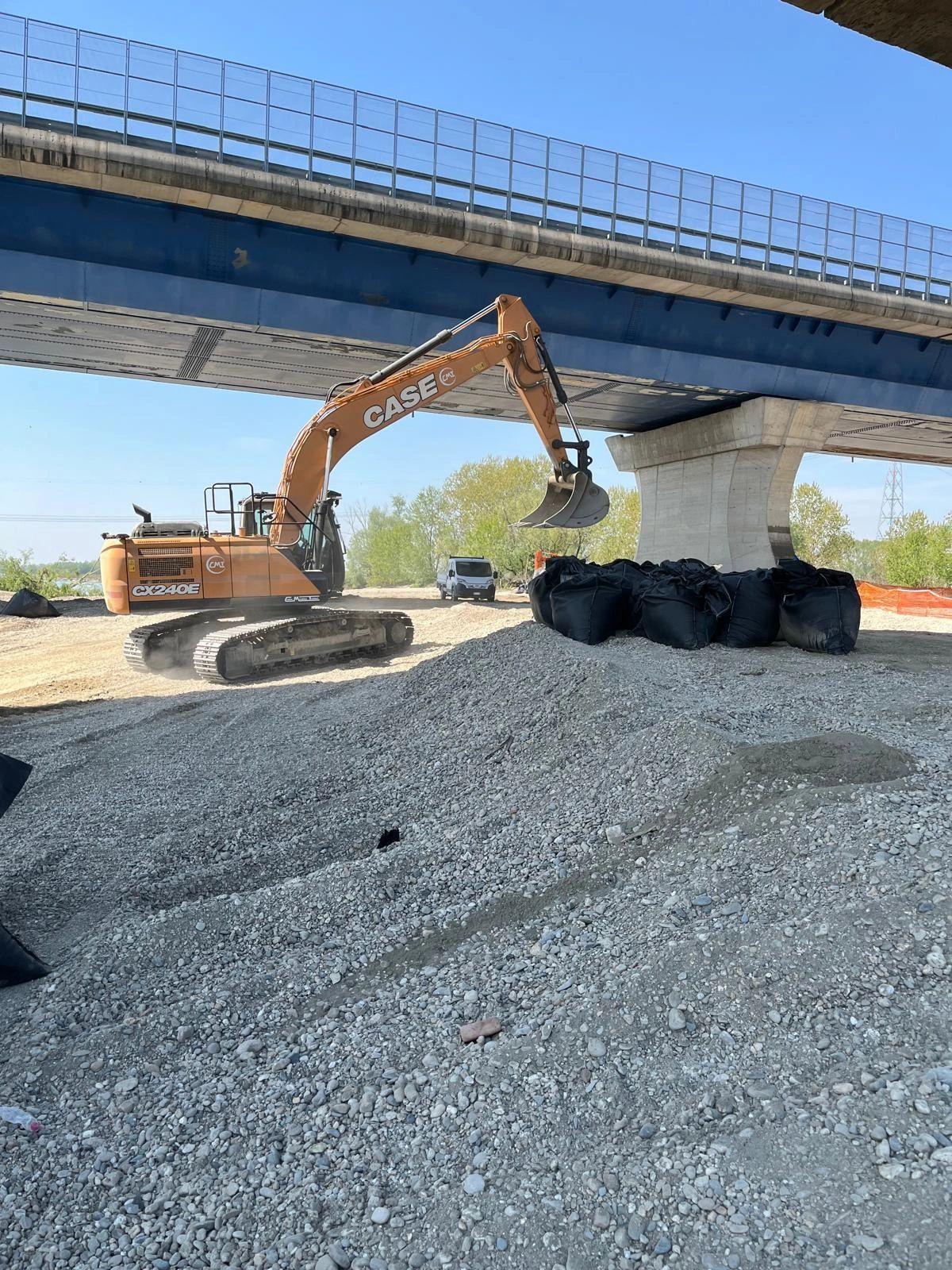 Proseguono i lavori di manutenzione lungo gli argini del fiume Po, nei pressi del Ponte dell’Autostrada A7.