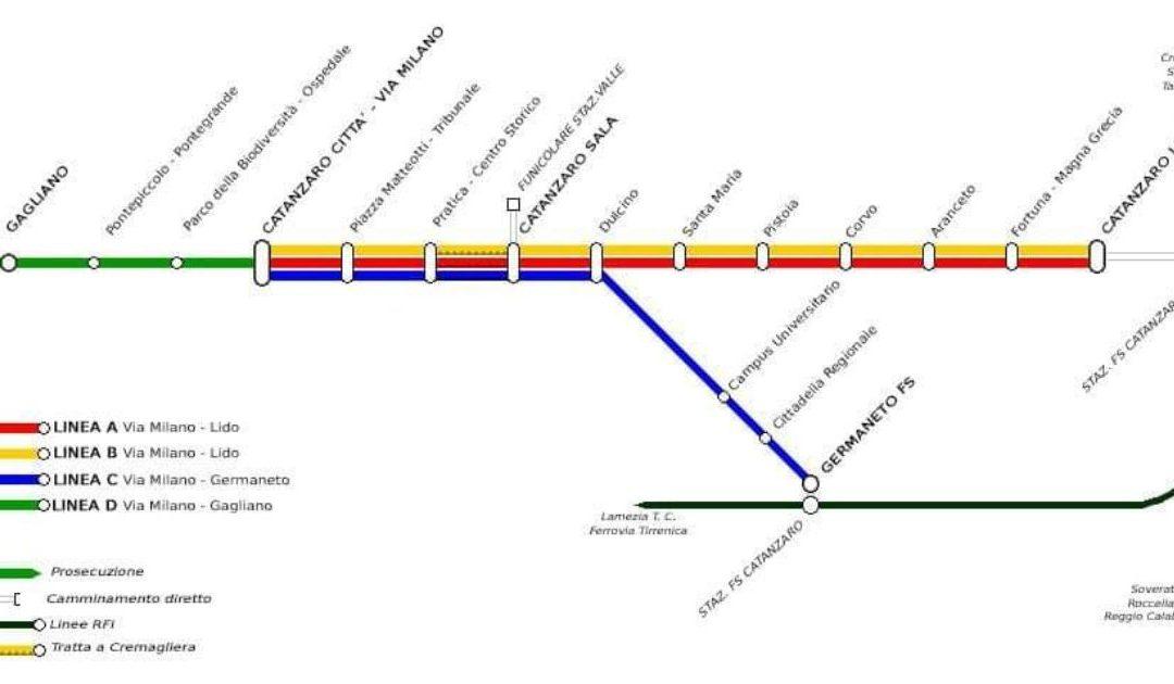 Parallelamente, si lavora alla linea C, che dalla stazione di Dulcino si estende fino a Germaneto, passando per le fermate intermedie di Campus e Germaneto.