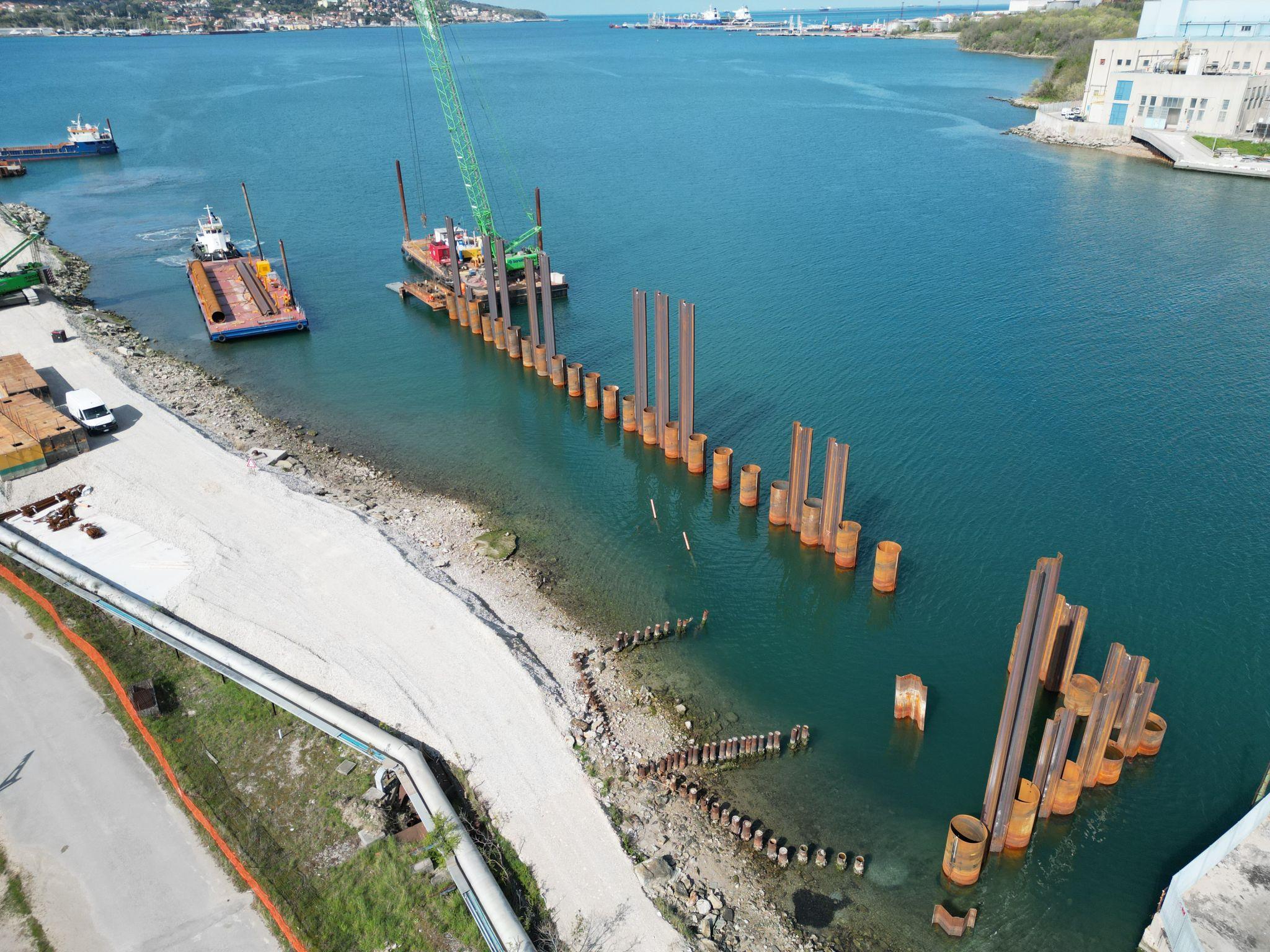 Le palancole vengono conficcate nel terreno per creare una barriera solida e durevole, capace di proteggere la struttura dall’erosione e dalle sollecitazioni marine. - Posa di tubazioni industriali: vengono installati nuovi condotti ad alte prestazioni, resistenti sia alla pressione che alla corrosione.