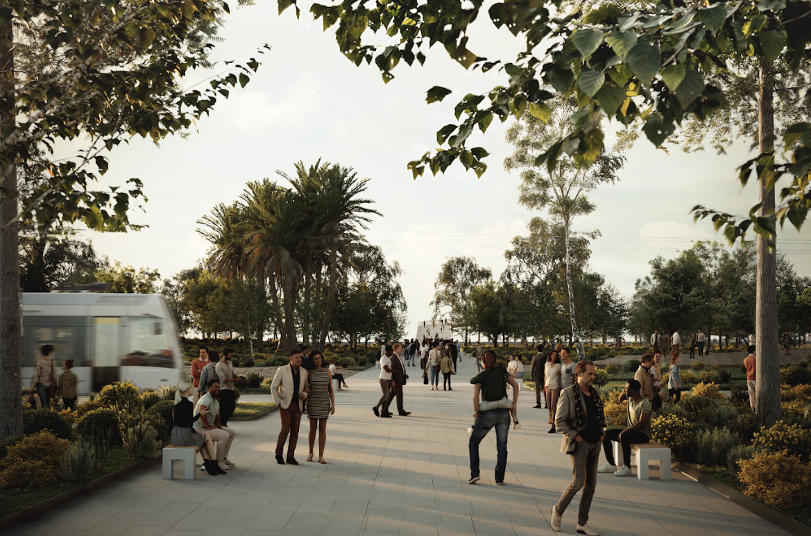 La superficie liberata dal traffico veicolare diventerà un parco lineare con percorsi pedonali, ciclabili e una linea tranviaria.