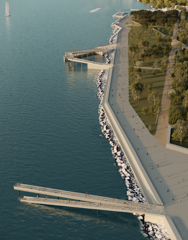 Il piano prevede la creazione di spiagge urbane e spazi pubblici destinati allo svago e al tempo libero, tra cui aree gioco, punti ristoro, e spazi per eventi. Inoltre, una nuova viabilità sotterranea, comprendente sottopassi e parcheggi interrati, migliora l’accessibilità e riduce la congestione del traffico.