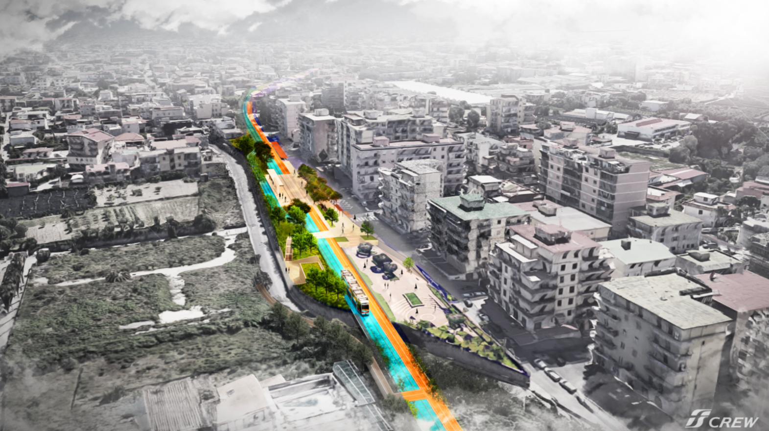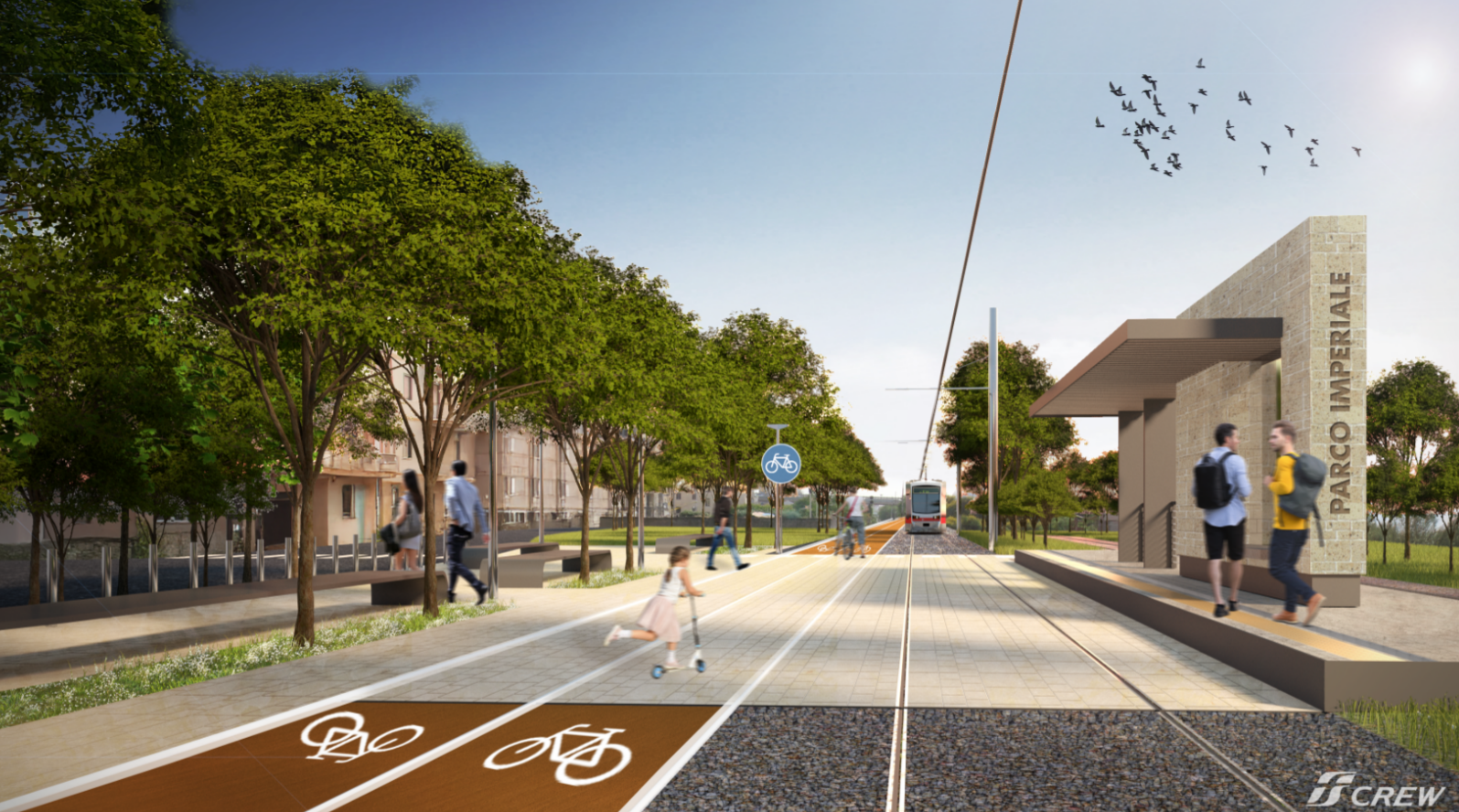 L’intervento prevede la riconversione funzionale dell’attuale tracciato ferroviario, lungo circa 5 km, e la creazione di una nuova infrastruttura pubblica capace di integrare mobilità dolce, accessibilità universale e miglioramento ambientale. La nuova linea sarà affiancata da un percorso ciclopedonale continuo e da aree verdi, in una logica di “parco lineare urbano” su scala territoriale.