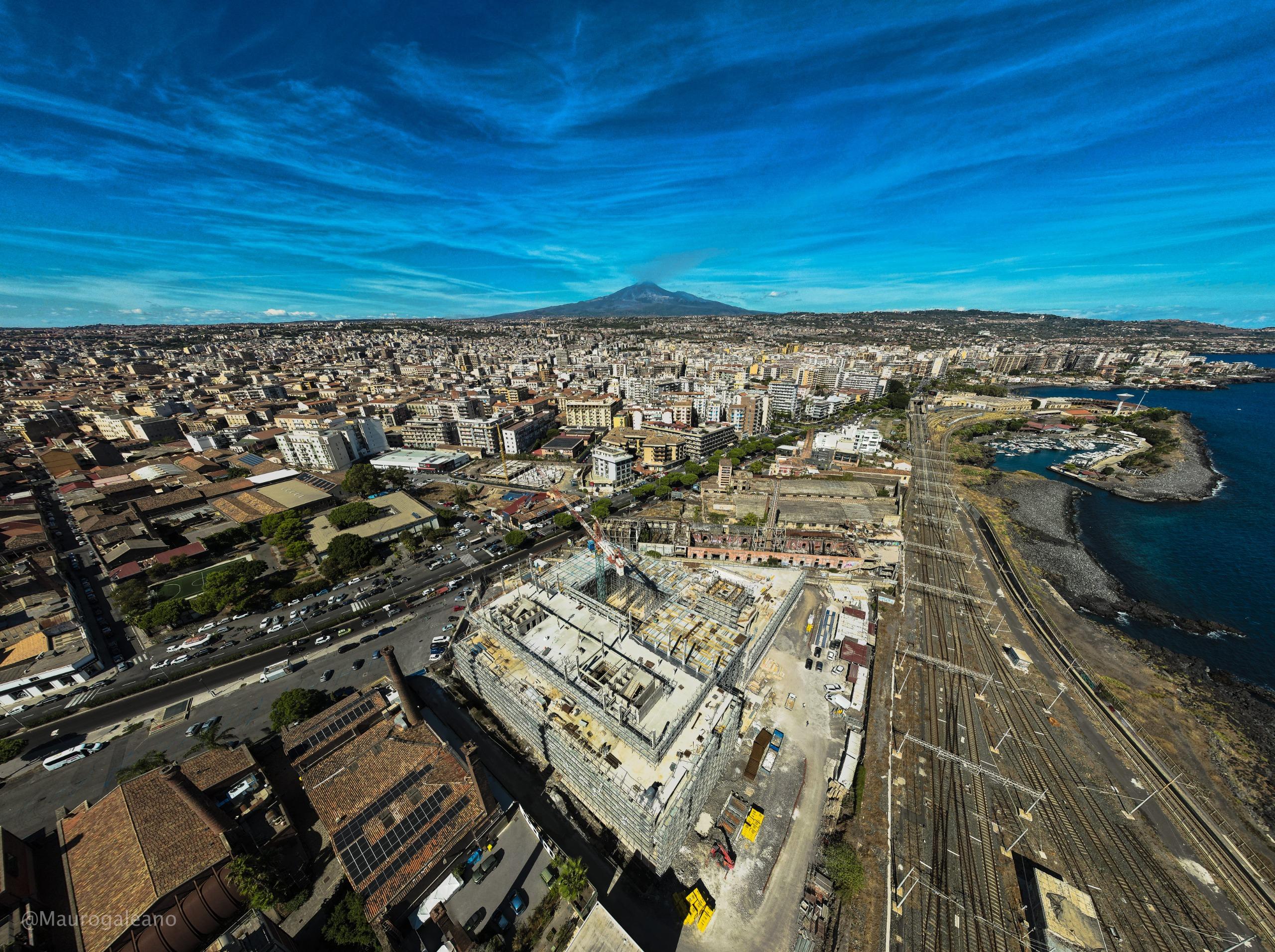 Nei giorni scorsi è stata condivisa un’immagine aerea che offre una nuova prospettiva sul cantiere della Cittadella Giudiziaria di Catania, in costruzione lungo Viale Africa. Lo scatto restituisce con chiarezza la scala e l’articolazione del manufatto, evidenziando l’organizzazione dei volumi principali e la relazione che l’intervento instaura con il tessuto urbano e il fronte mare.