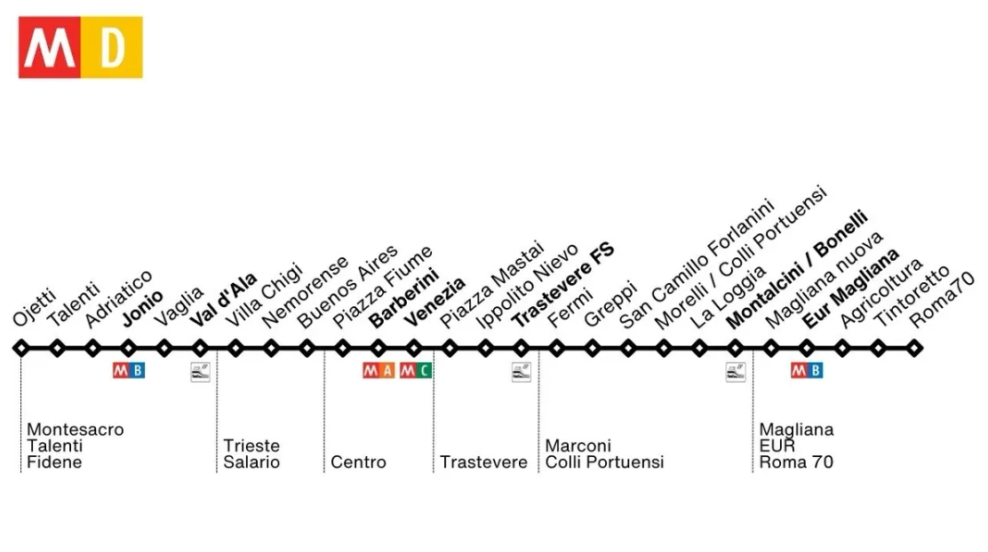 La fase iniziale della linea D comprende il tratto da Nomentana al centro della città.
